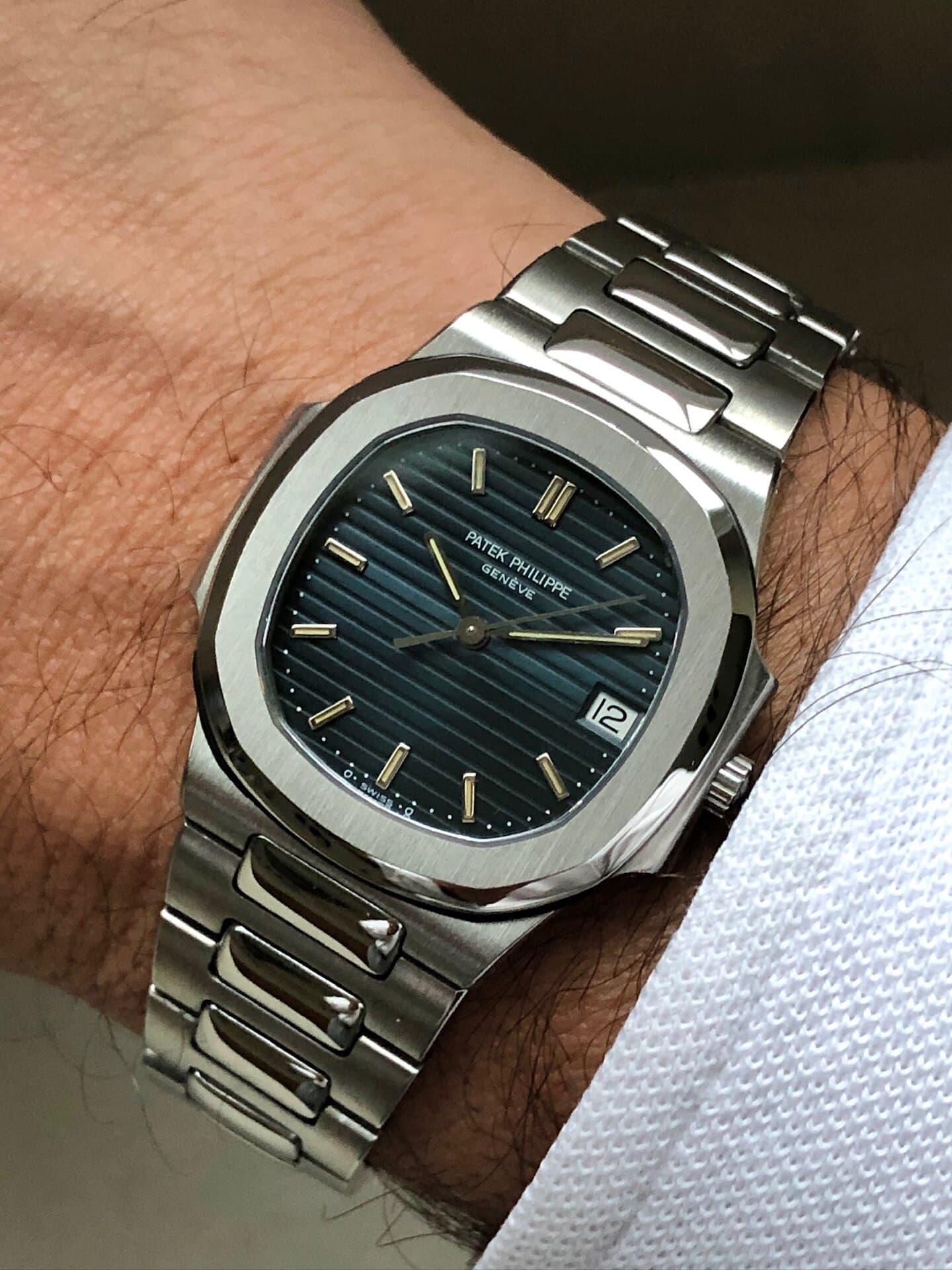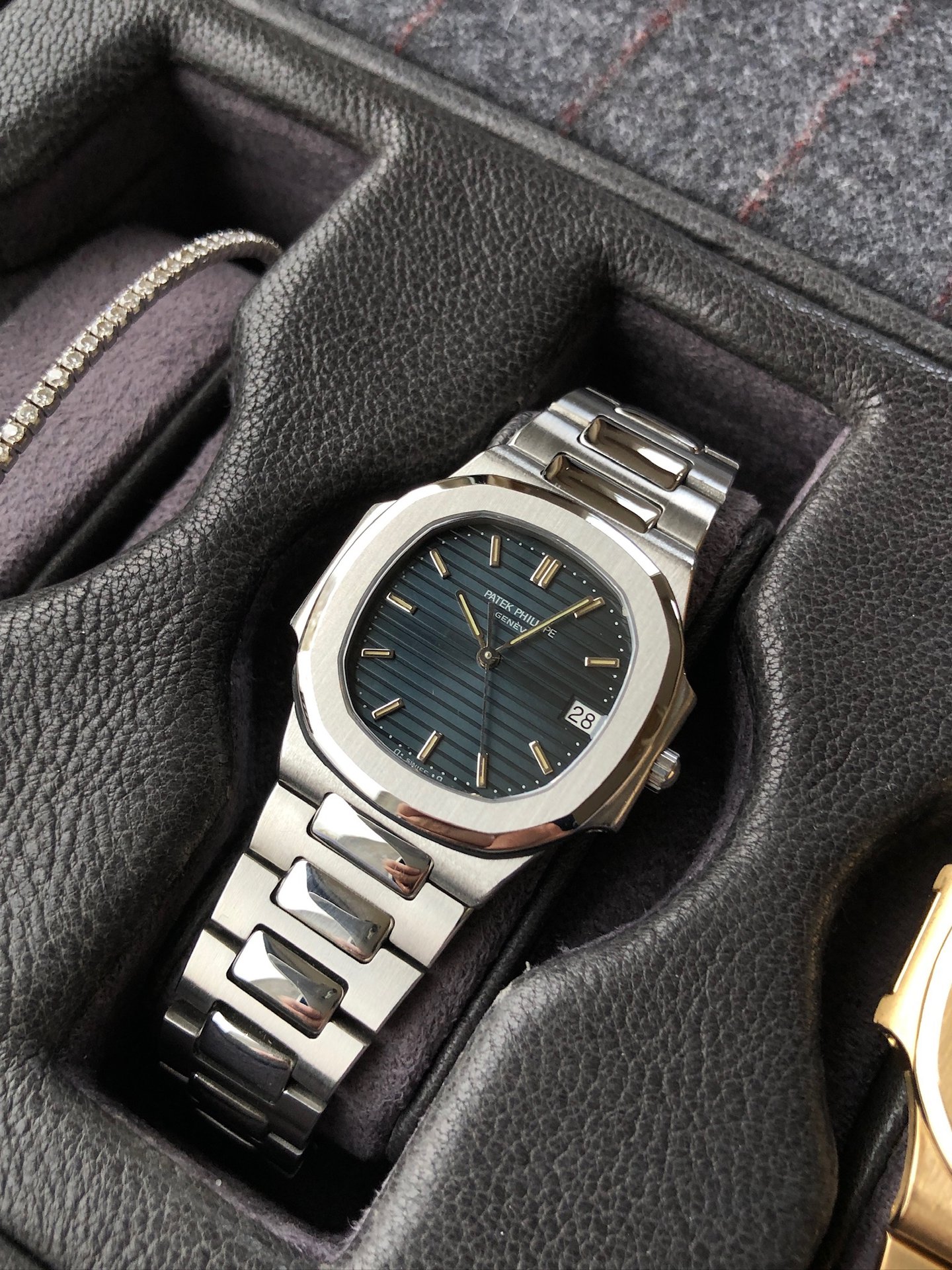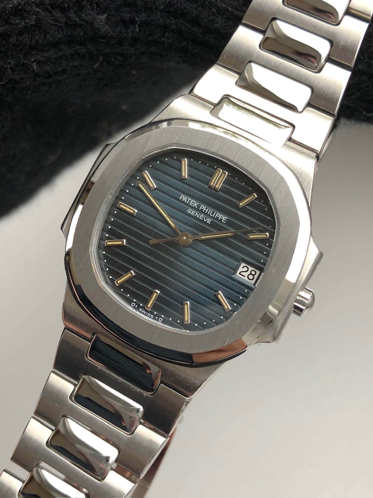 The Nautilus 3900 is the elegant midsize interpretation of Patek Philippe’s most iconic deisgn. Introduced in the early 1980s, this 32.5mm model retains the instantly recognizable Gérald Genta DNA – the rounded octagonal bezel, the integrated steel bracelet and the perfect balance between sportiness and refinement typical from Patek’ Philippe’s finest craftsmanship. The watch proposed here is in fantastic condition and was manufactured in december 1984 and sold in july 1986 in Gstaad.