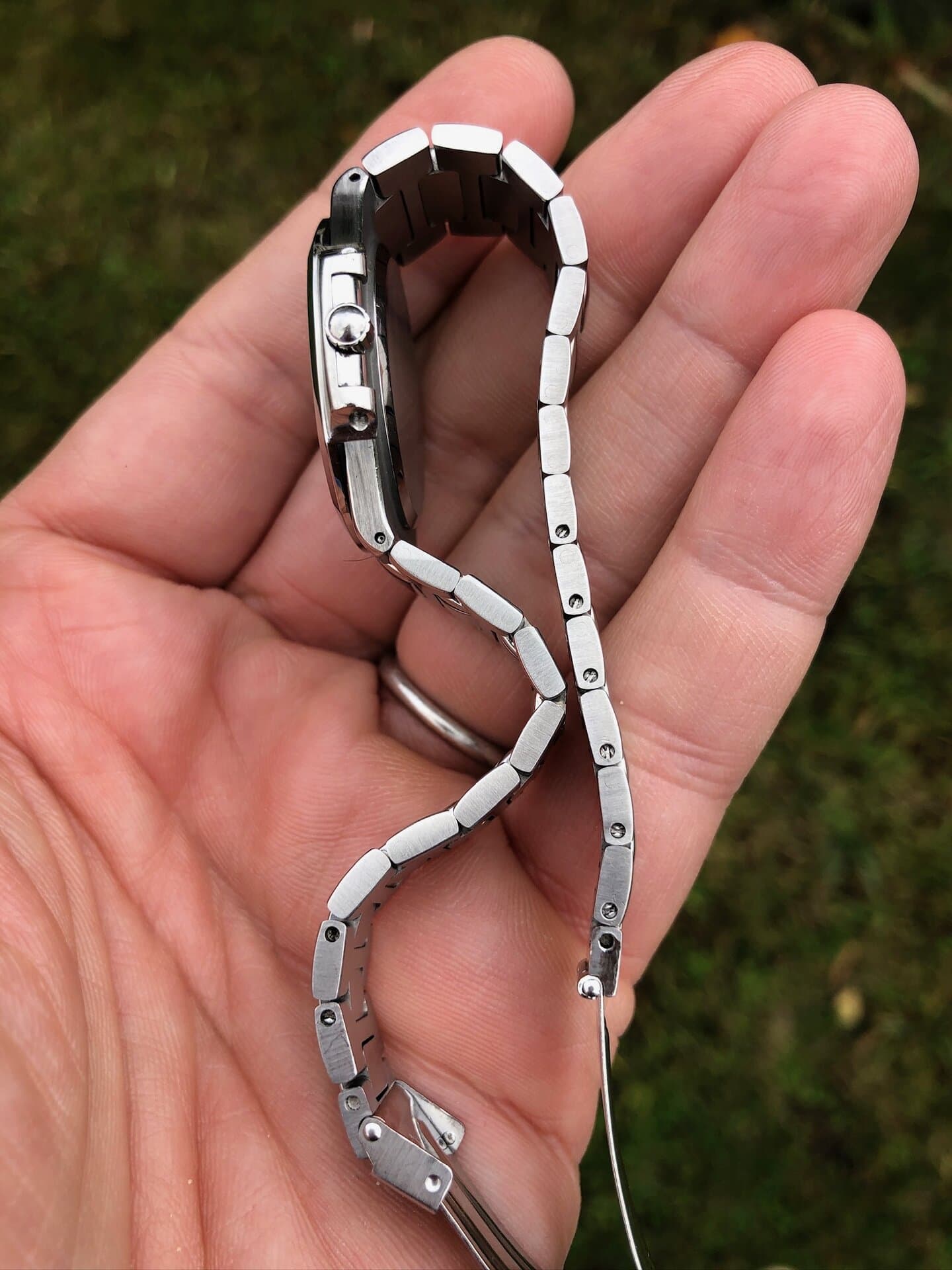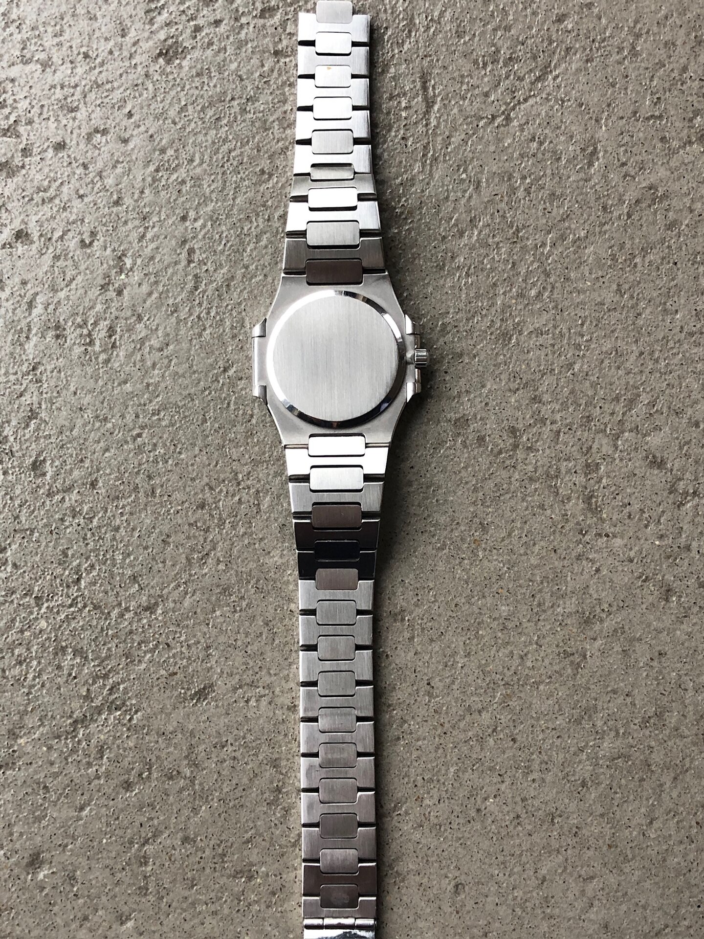 Bracelet: the bracelet is extremely thick ans has 22 links. Nautilus engraved on the clasp.