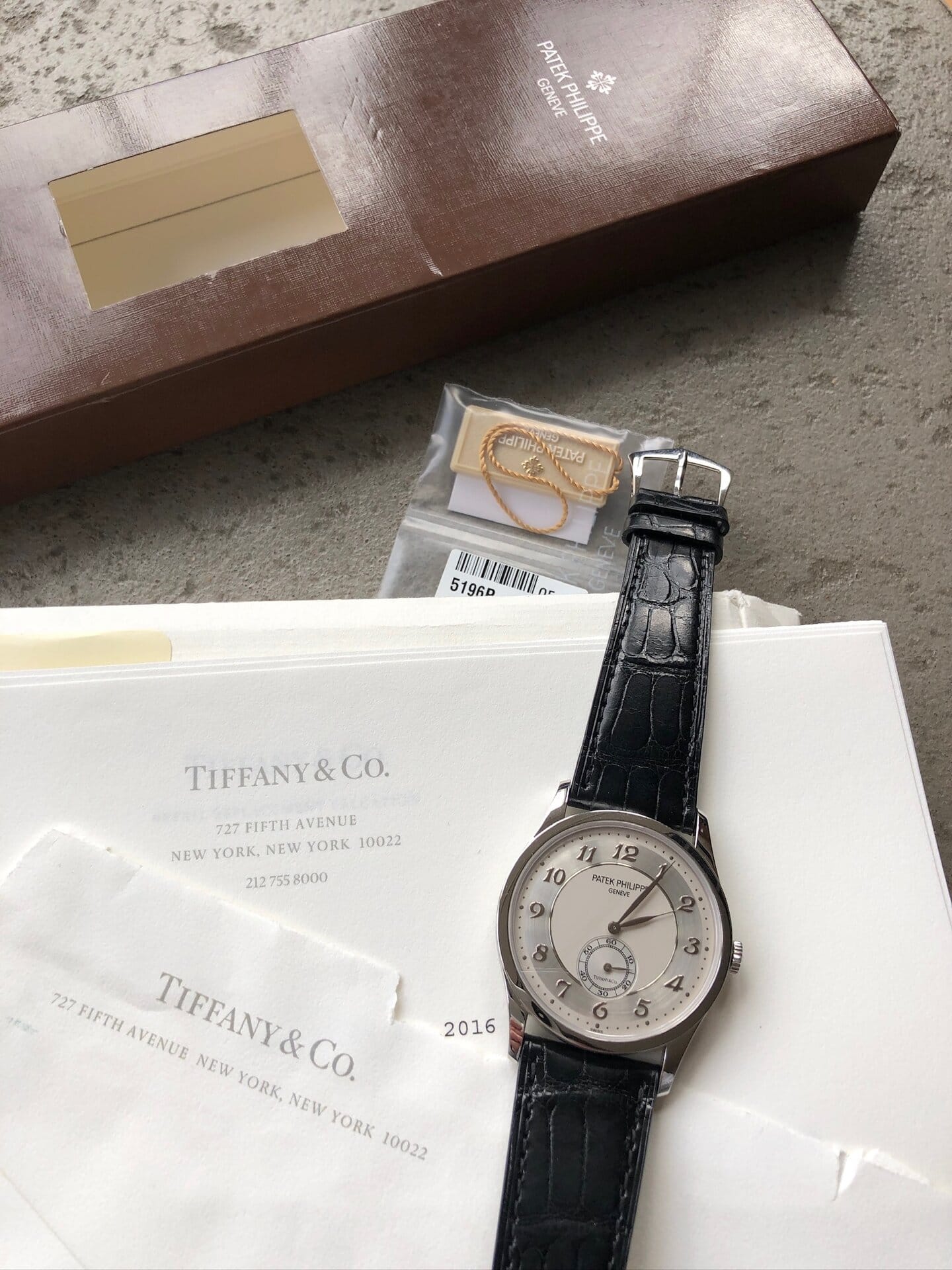 This was one of the most beautiful dial of the Patek line. The 5196 replaced the 3919 in 2004. The platinum version was introduced in 2006 until 2020. It featured a specific dial assuming a direct inspiration from rare dial variation of reference 570. It is understood that only about 3 or 4 Tiffany&Co double signature were delivered per year.
