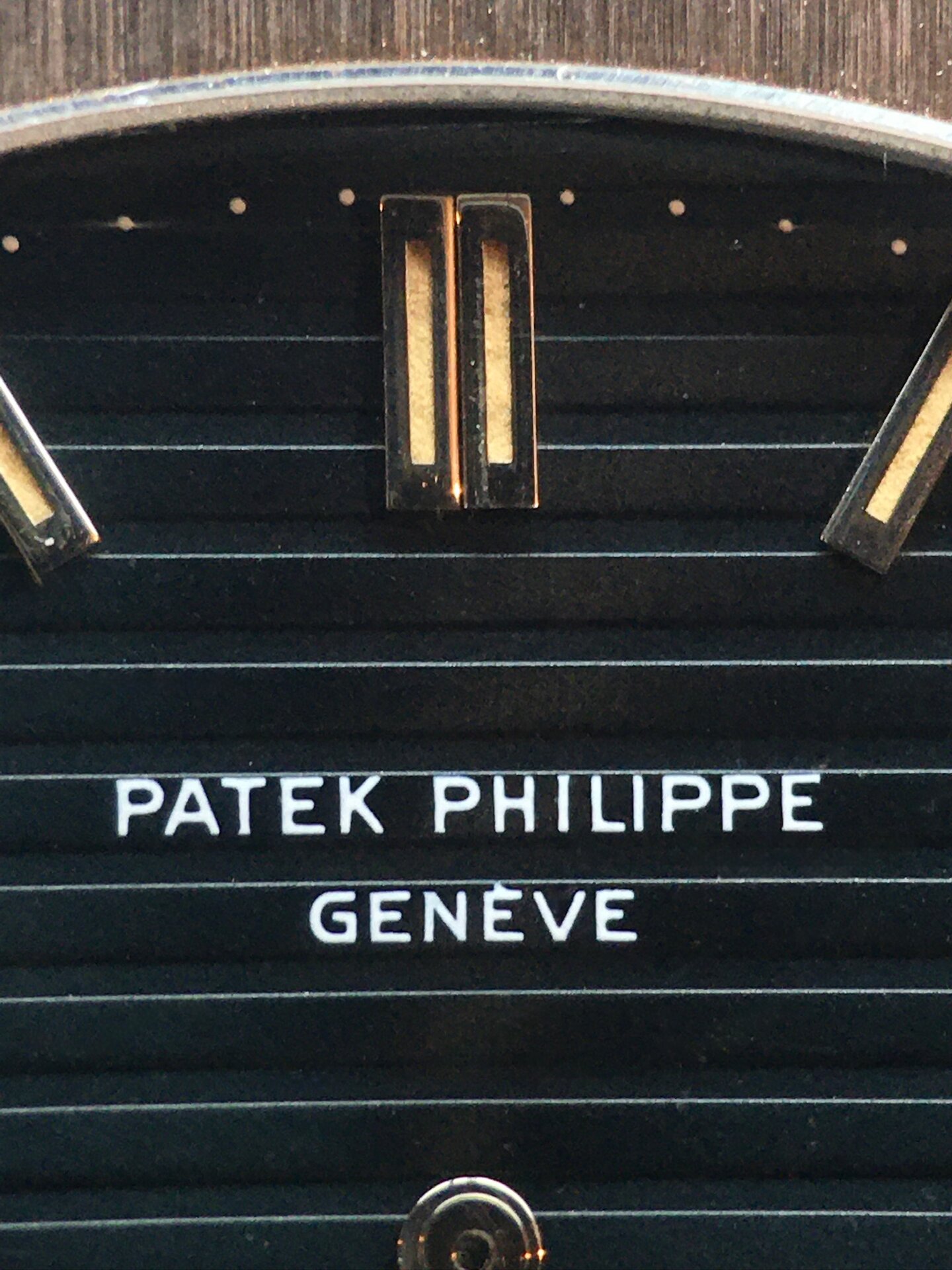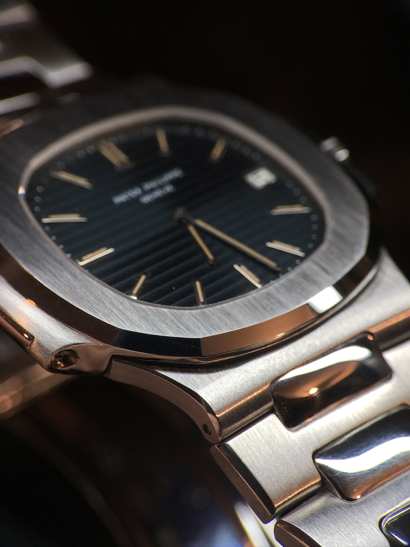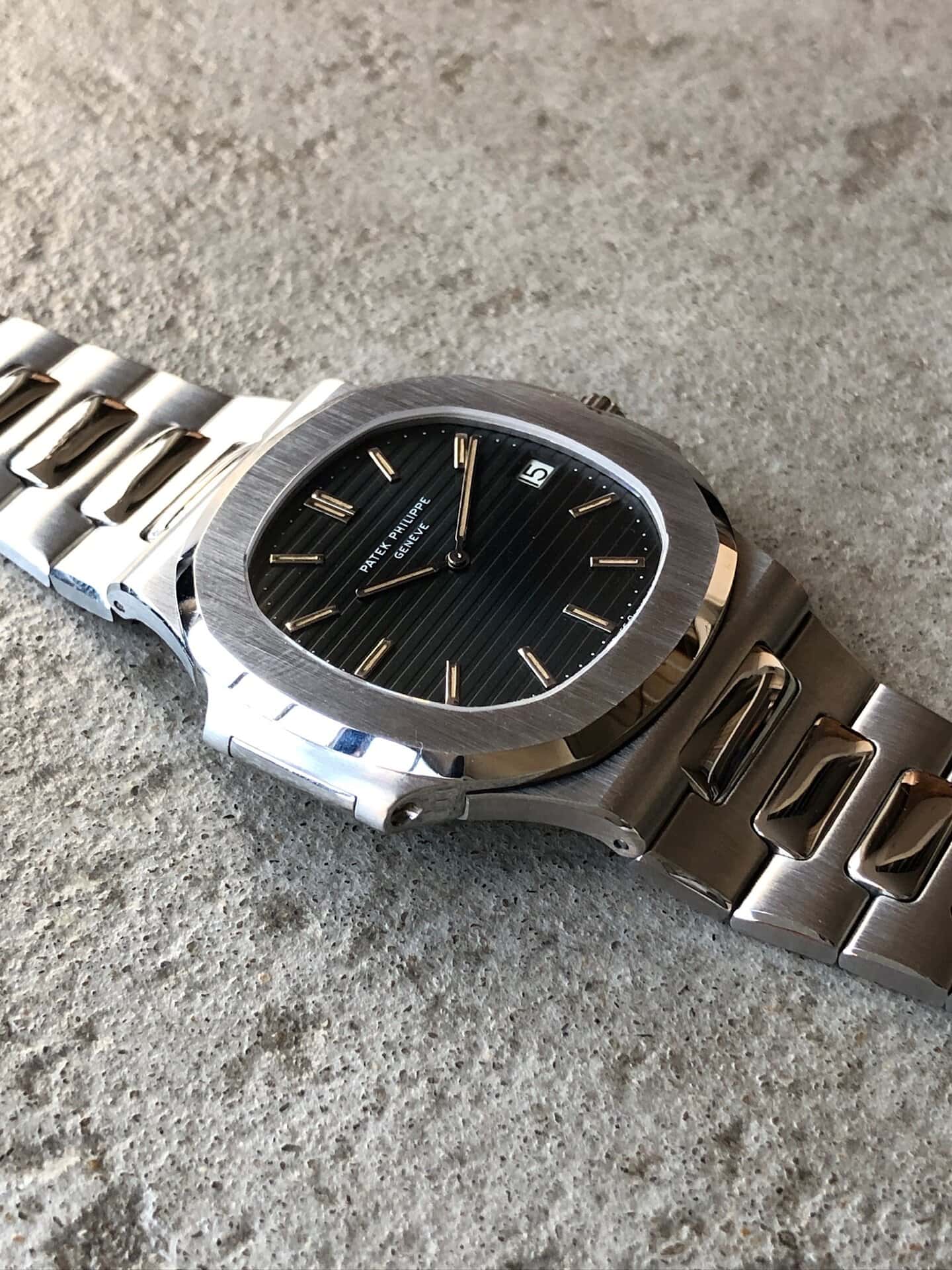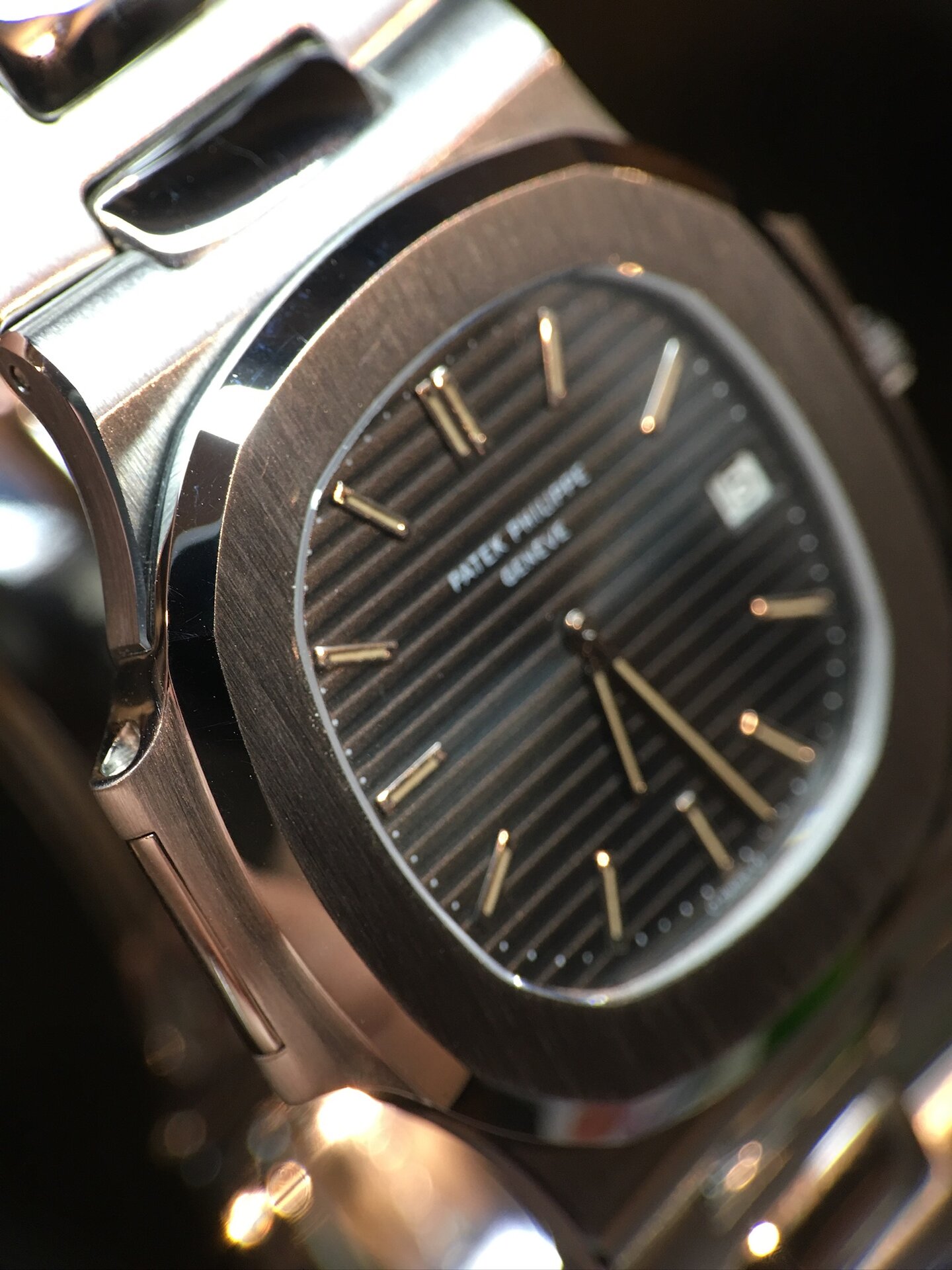 Case: very thick case highlighting a superb condition. The bezel has retained its initial thick proportions of the porthole pattern which is characteristic of the Nautilus reference. The last 3 digits of the case serial (646) can be found in the hinge of the bezel. A refined evidence proving the originality of the bezel that one can only find with Patek.