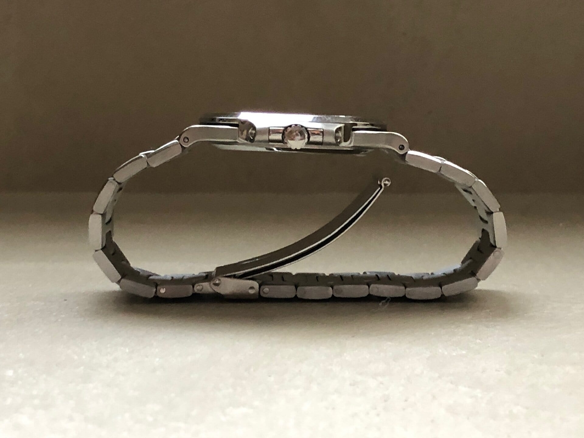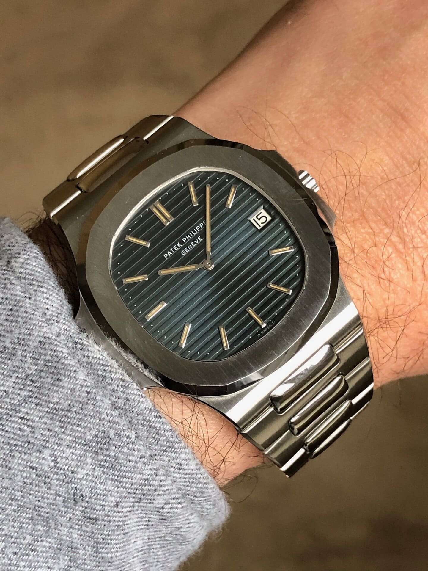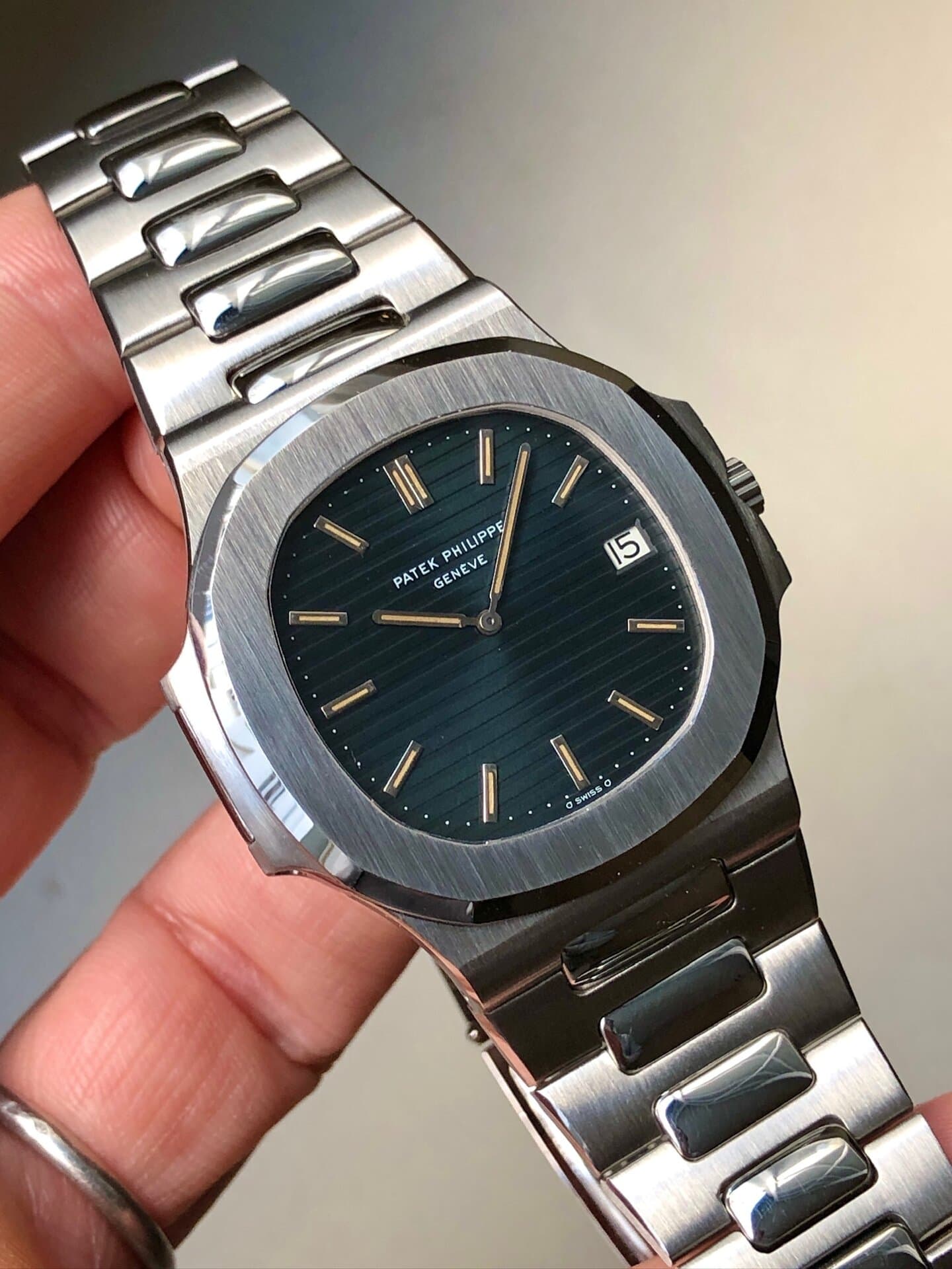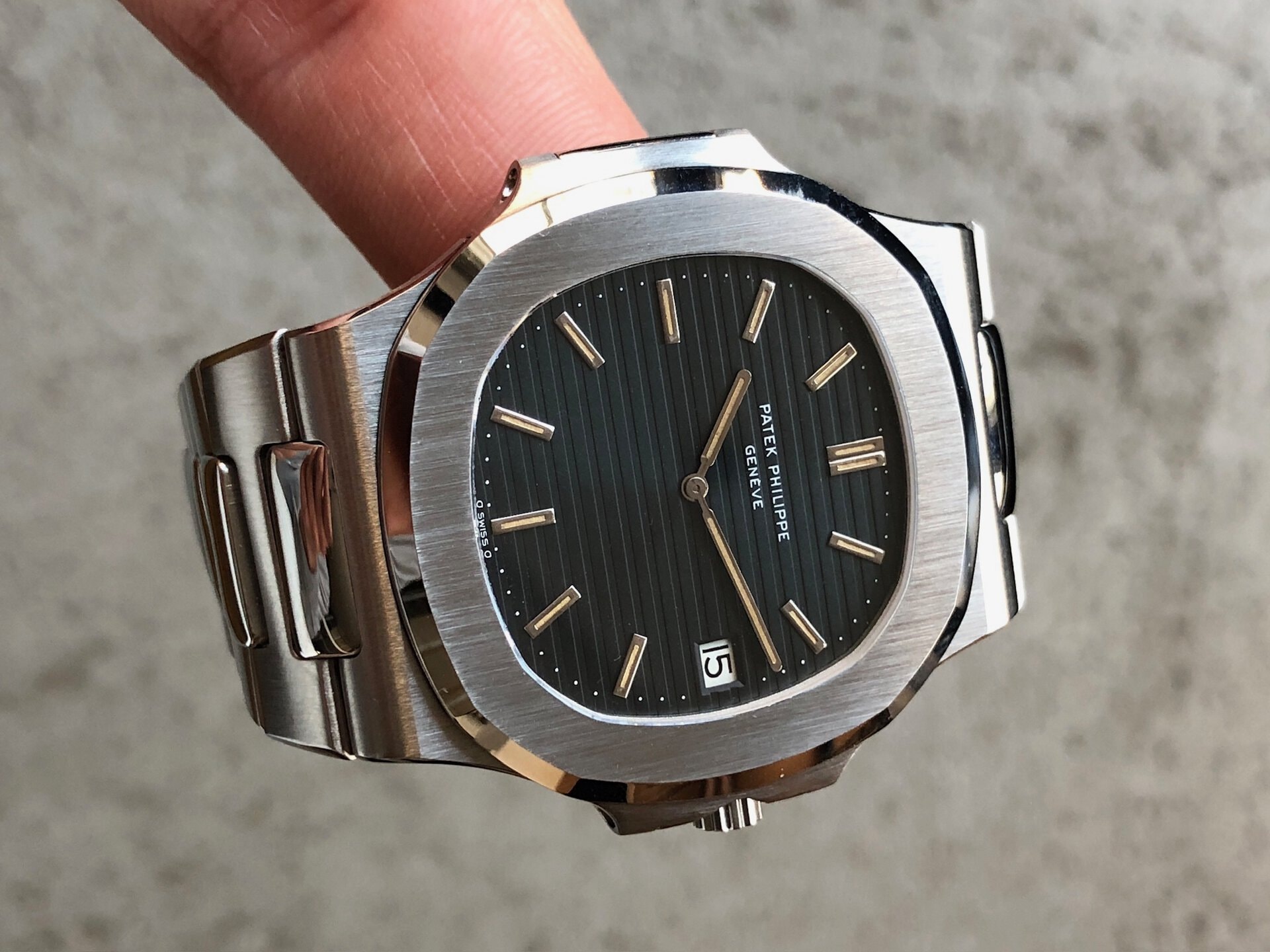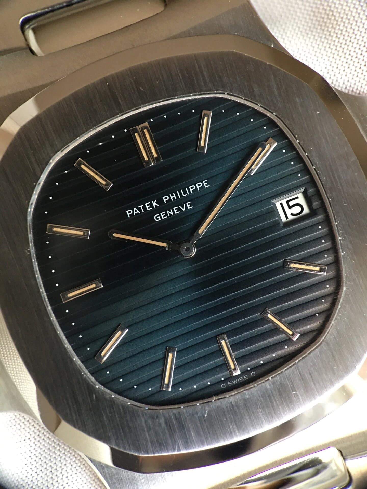 Bracelet: large bracelet (/01A) in good condition is still managing to stand up. The first generation clasp is matching the production year. For collectors this bracelet is THE one to have as all the other bracelets were thinner (be it the next generation /11A or a dedicated Patek aftermarket bracelet). 18 links.