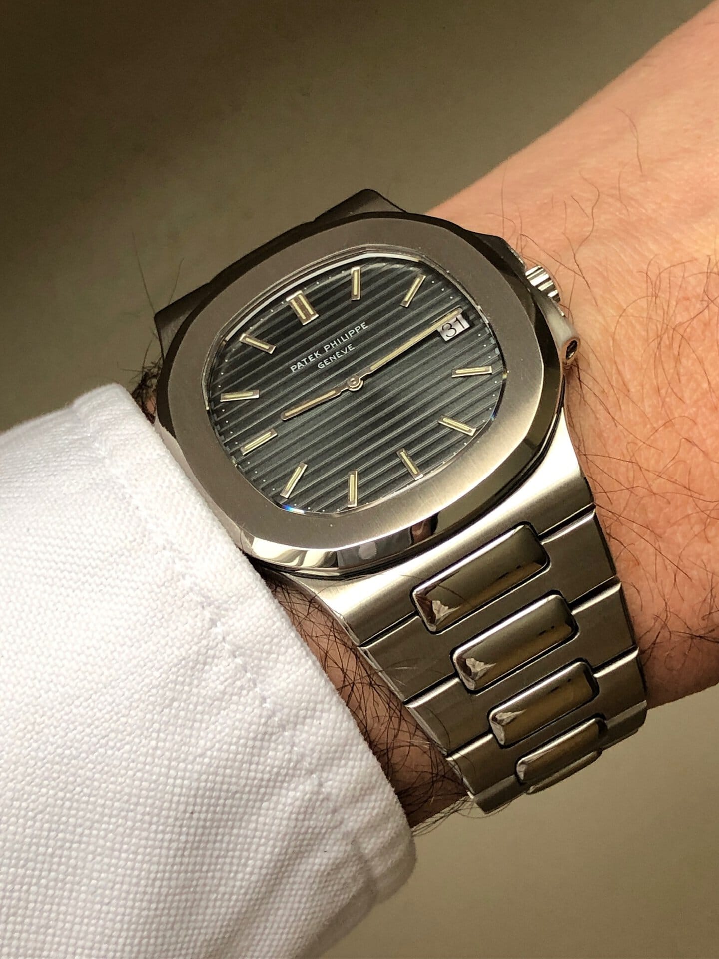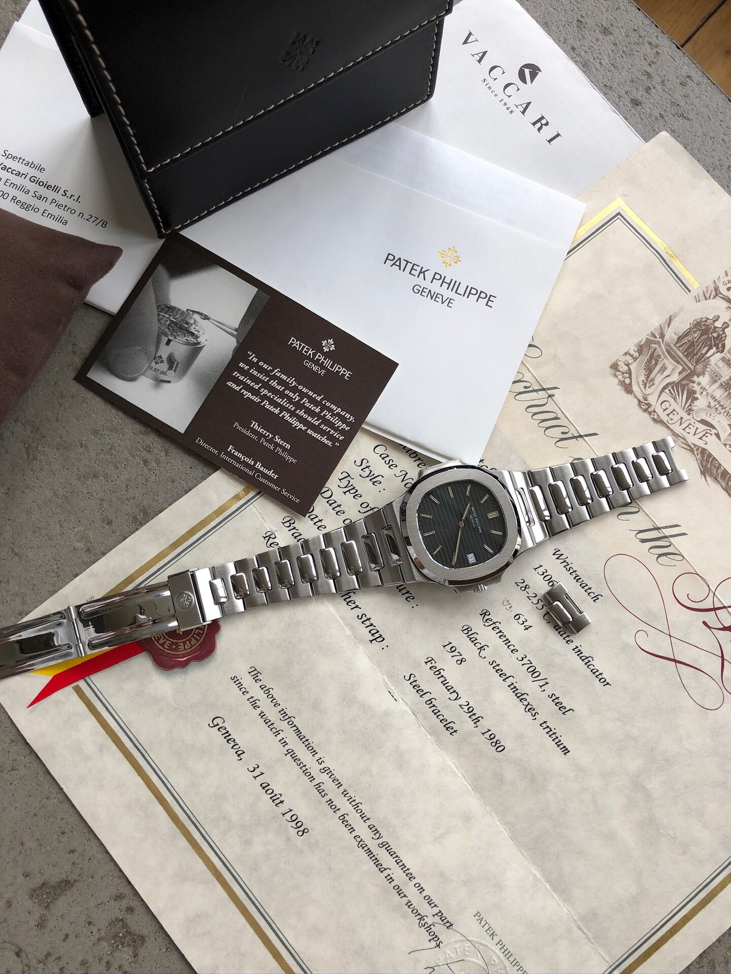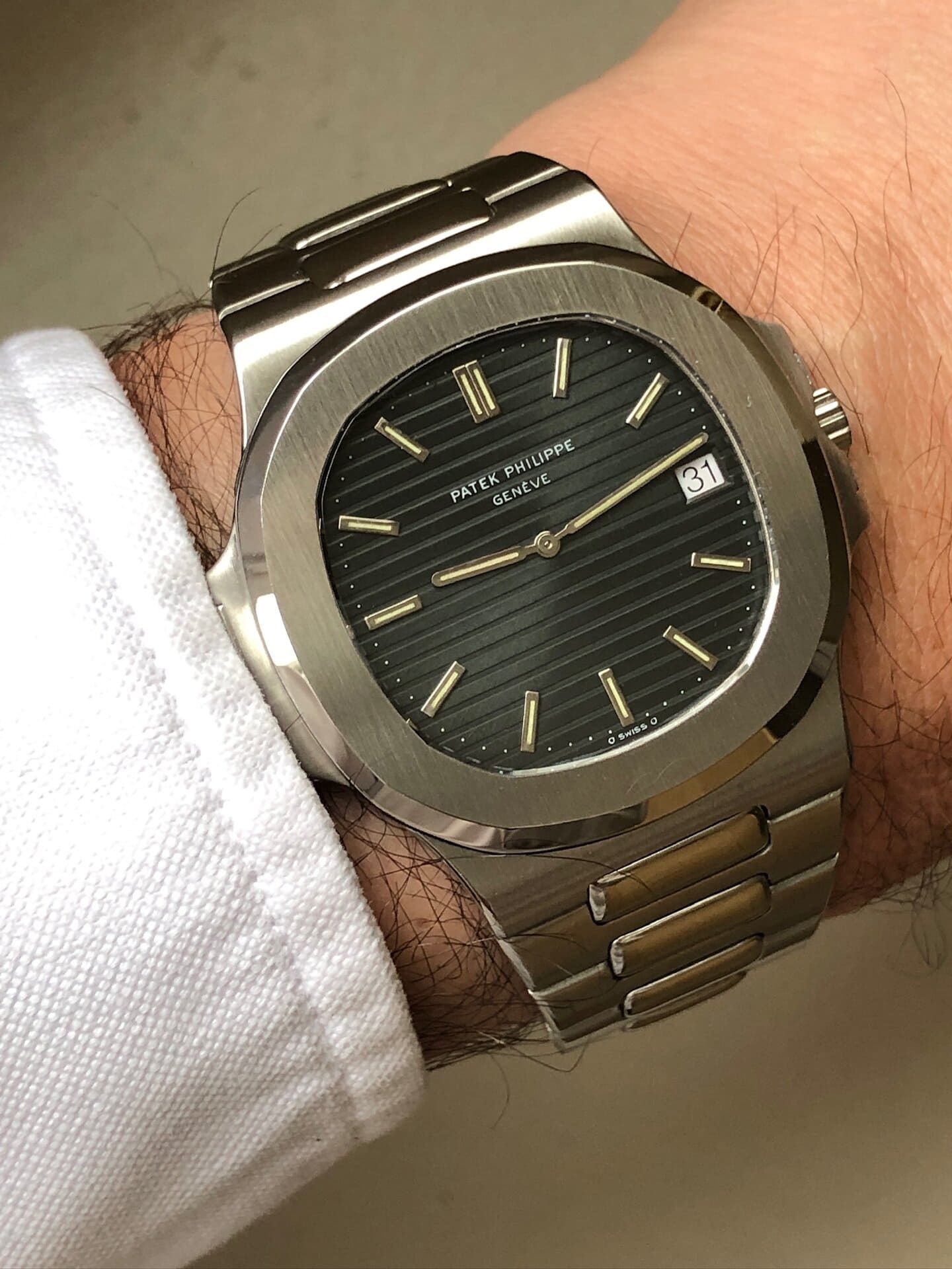 The presented timepiece is an original Nautilus Jumbo manufactured in 1978 and sold on February 29th 1980 according to its fresh Patek Philippe extract from the archives (that’s as close it can get to a perpetual calendar!)