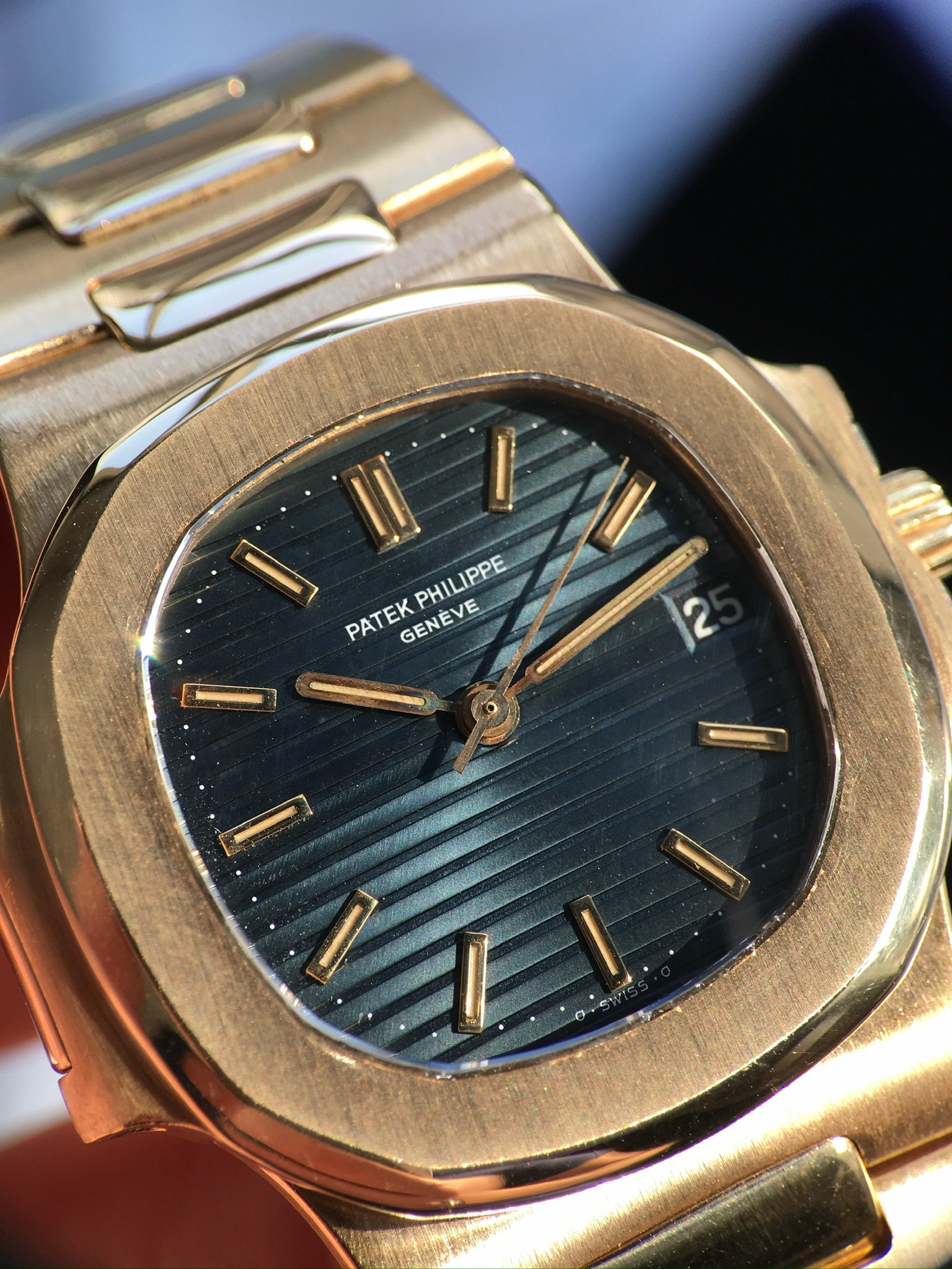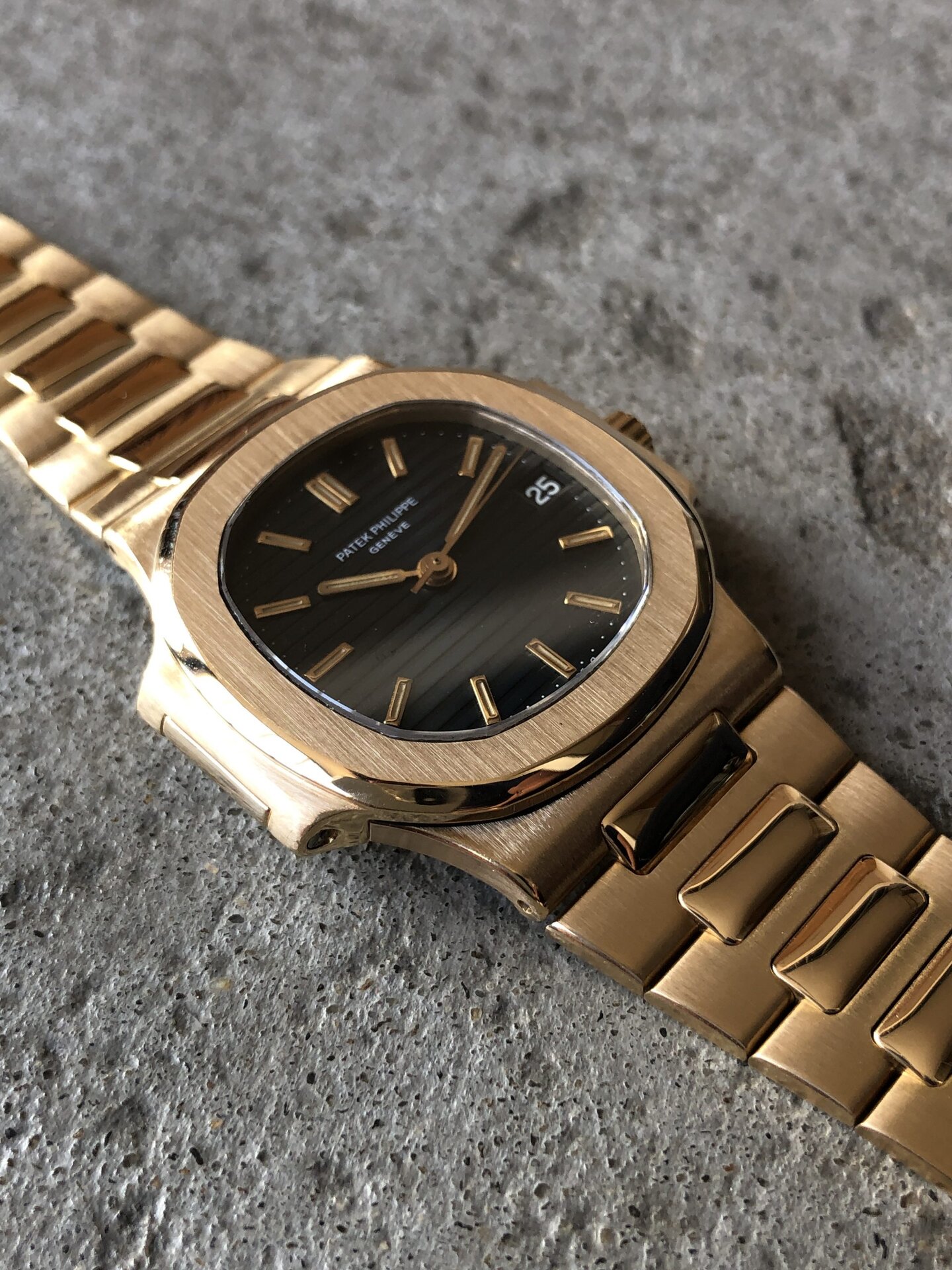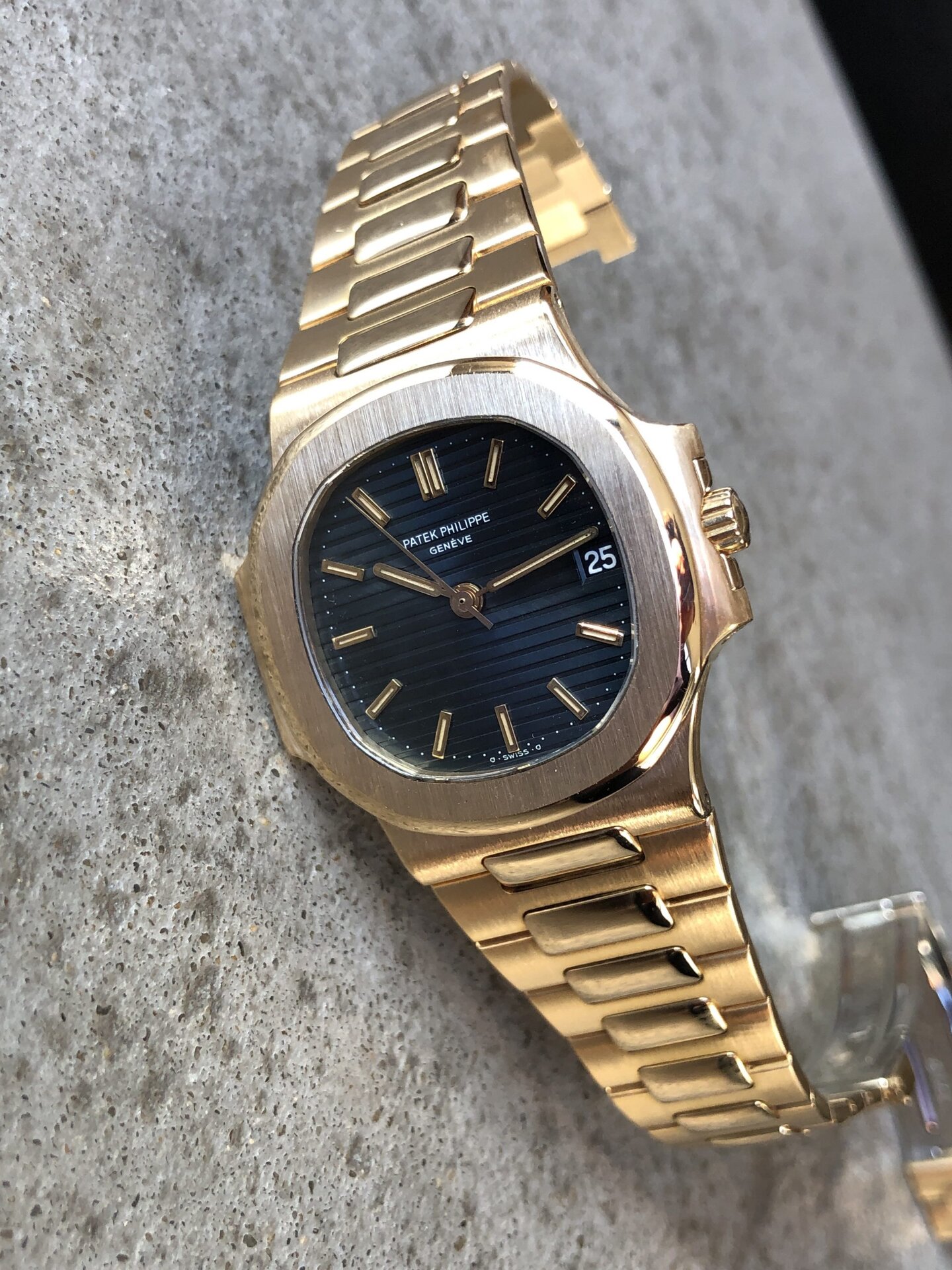 For the most delicate of us this 37.5mm timepiece is the alternative to its « Jumbo » sister the Nautilus ref.3700 (42mm). A true unisex watch! You have been warned, Madame will most likely borrow it more often that you would like. The watch proposed here is part of the second series with a white date disc, manufactured in 1983 and sold in june 1983.