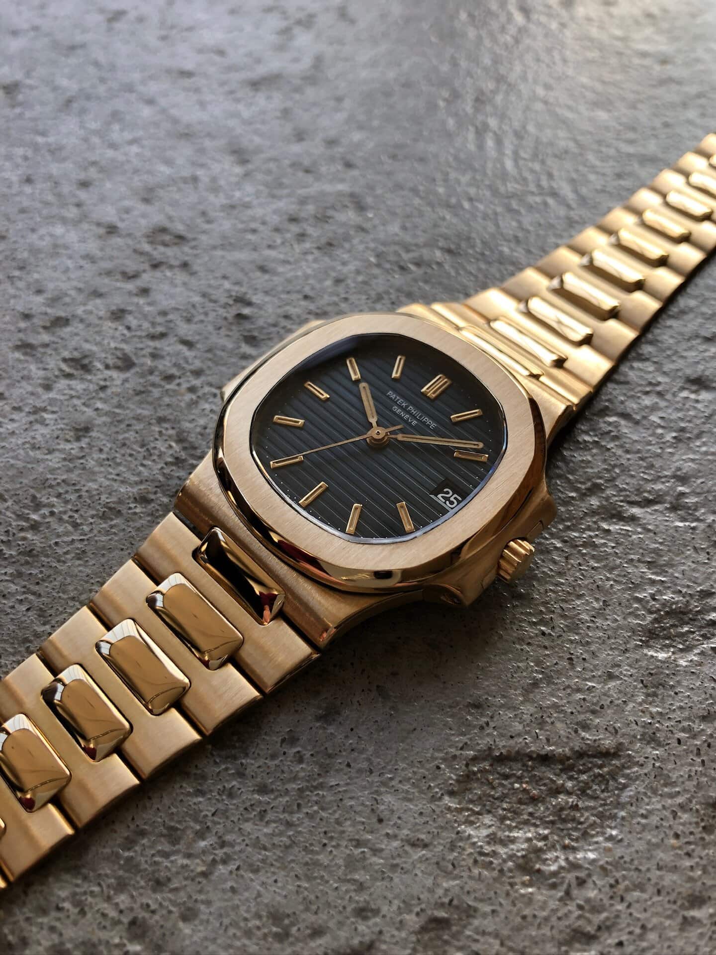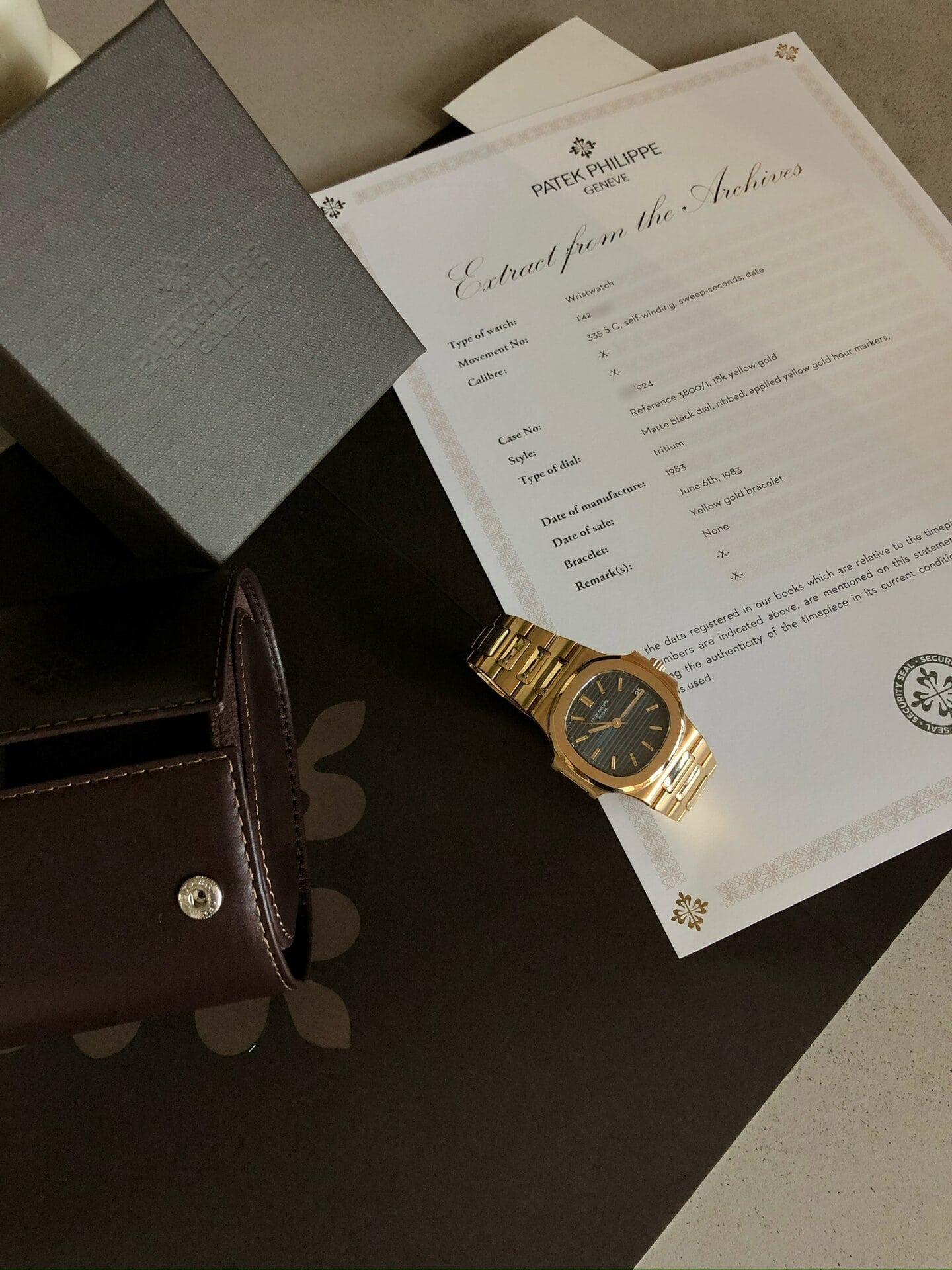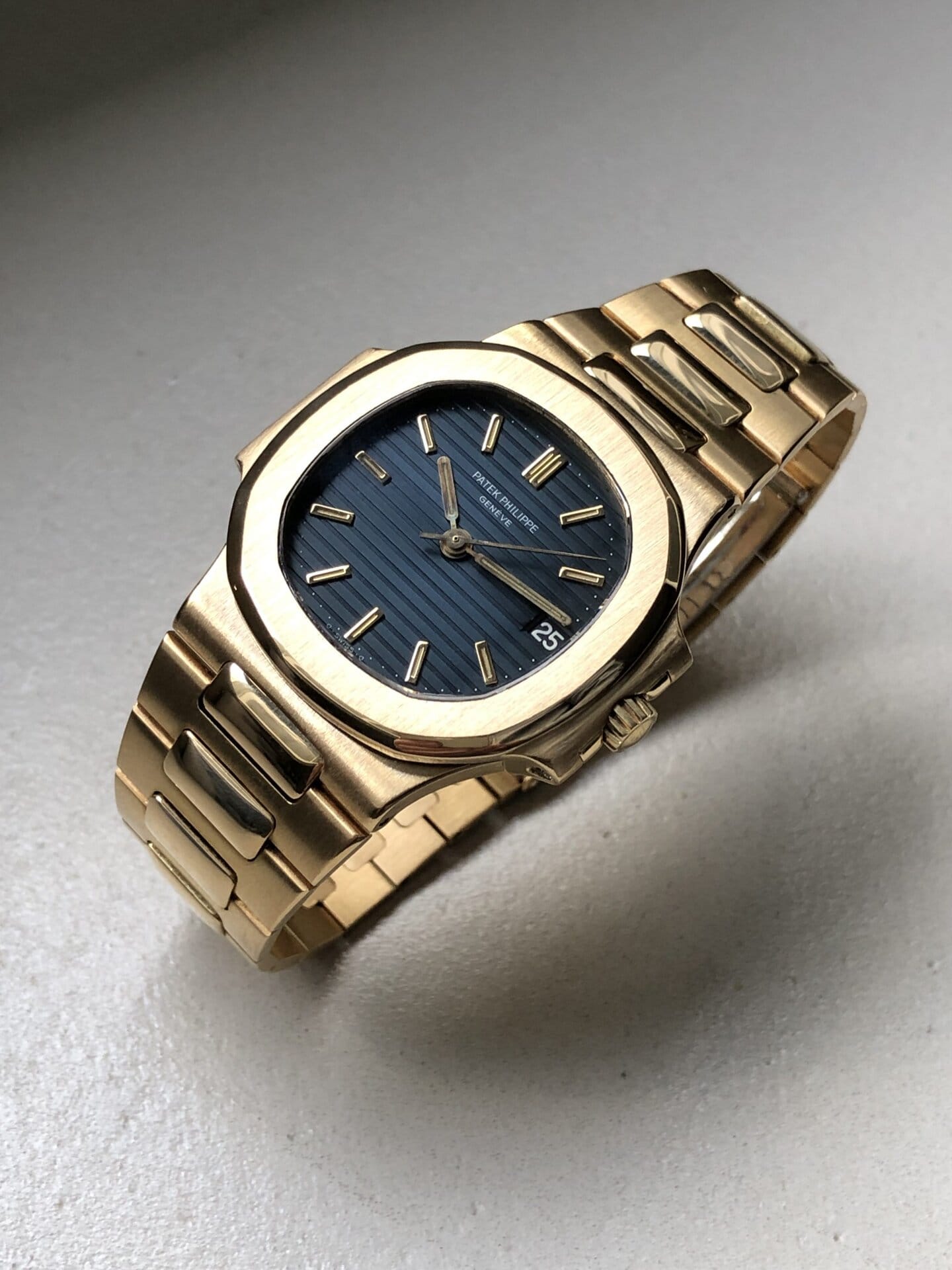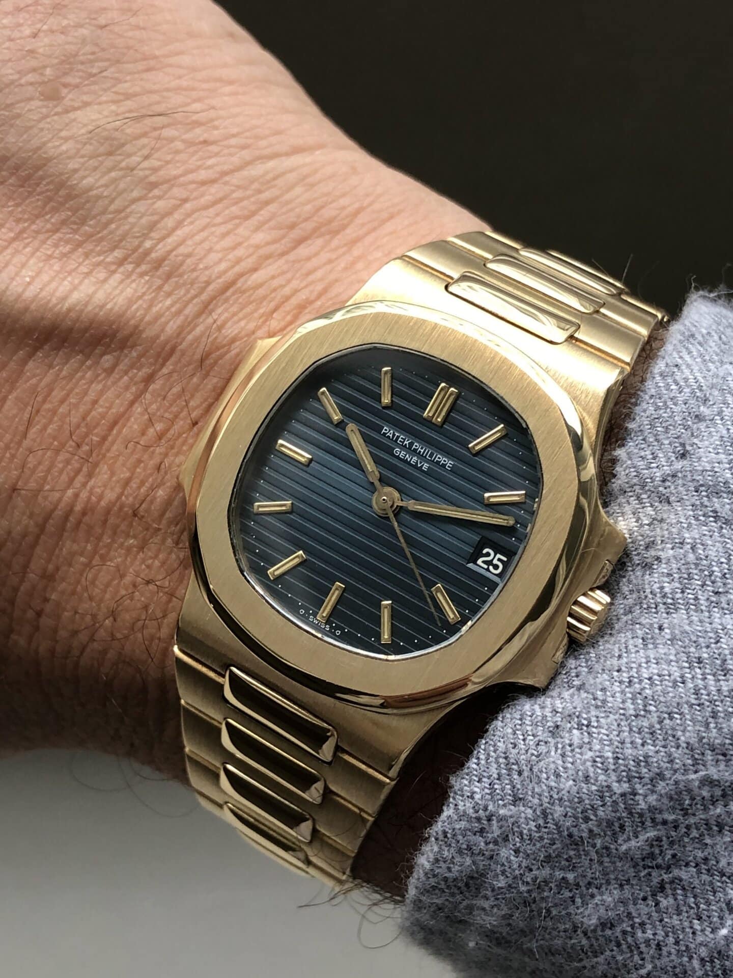 For the most delicate of us this 37.5mm timepiece is the alternative to its « Jumbo » sister the Nautilus ref.3700 (42mm). A true unisex watch! You have been warned, Madame will most likely borrow it more often that you would like. The watch proposed here is part of the second series with a white date disc, manufactured in 1983 and sold in june 1983.