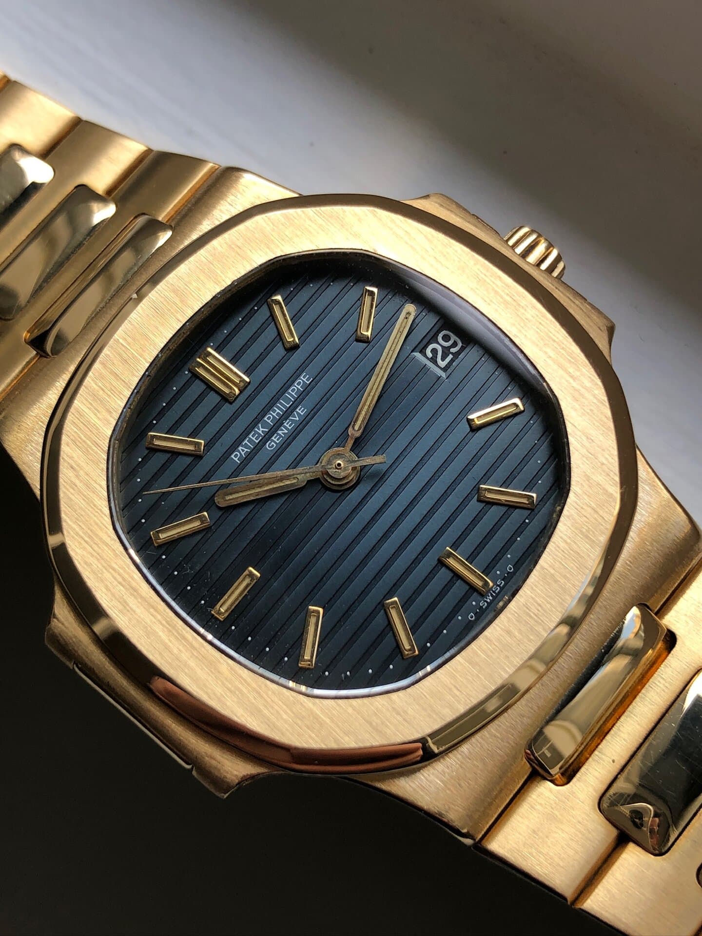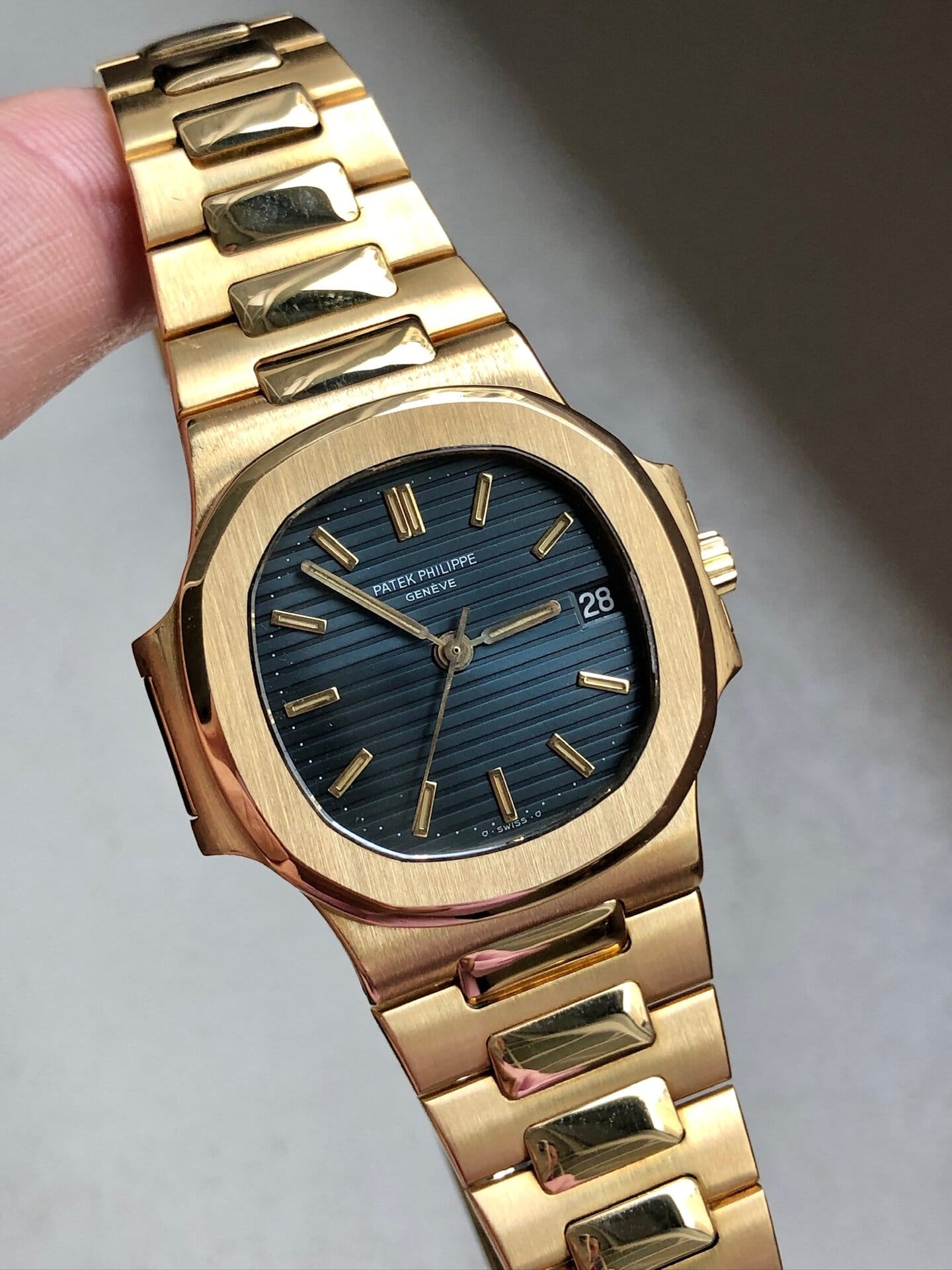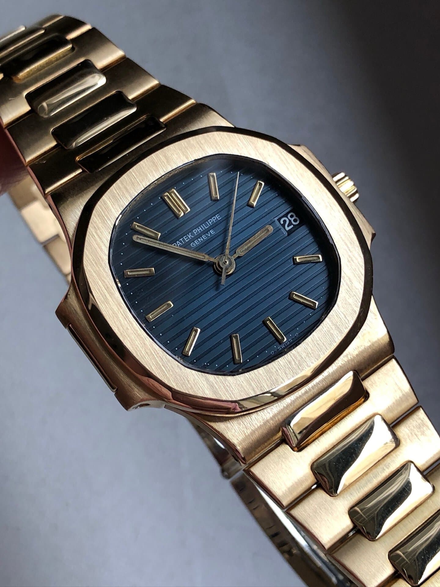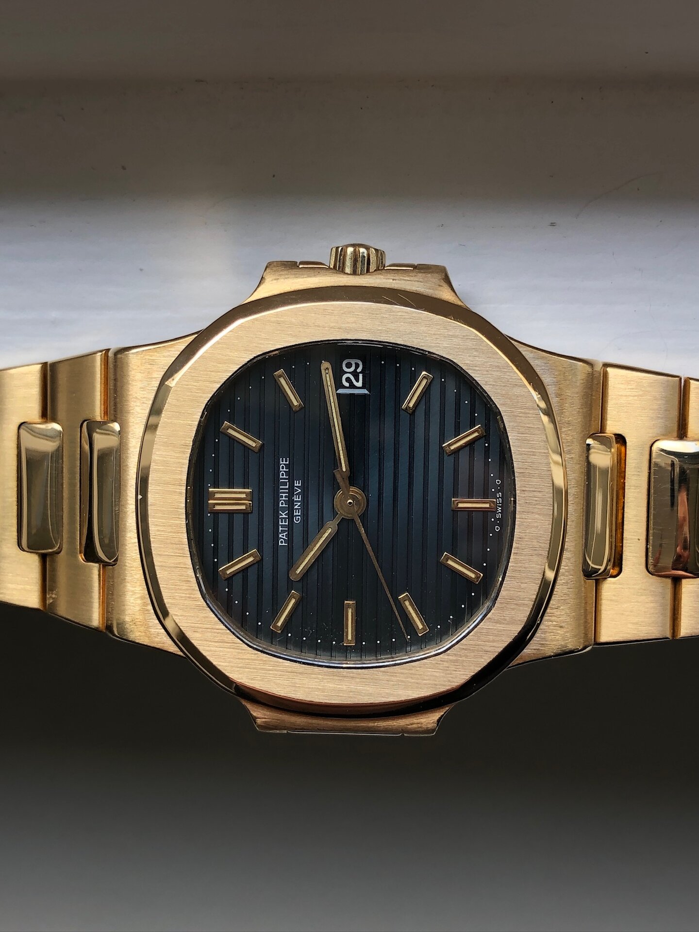 For the most delicate of us this 37.5mm timepiece is the alternative to its « Jumbo » sister the Nautilus ref.3700 (42mm). A true unisex watch! You have been warned, Madame will most likely borrow it more often that you would like. The watch proposed here is part of the first series with a black date disc, manufactured in 1983 and sold in june 1983.