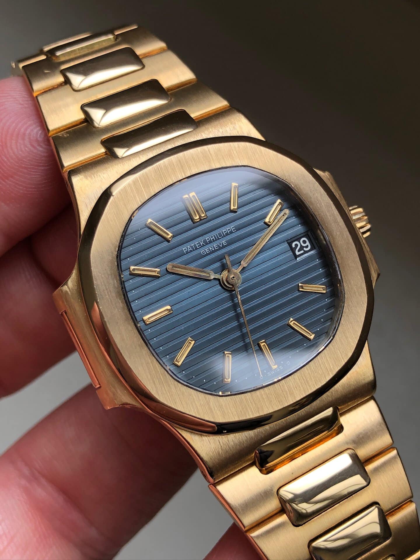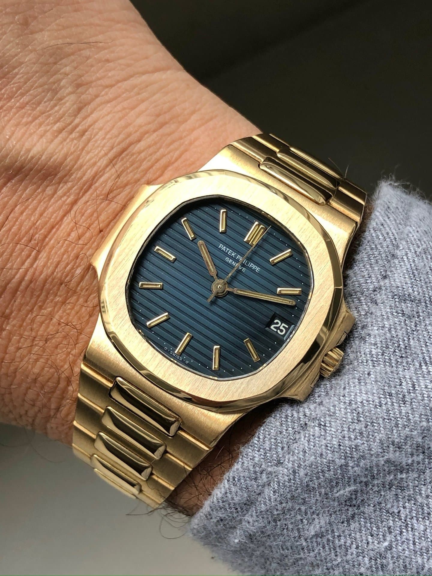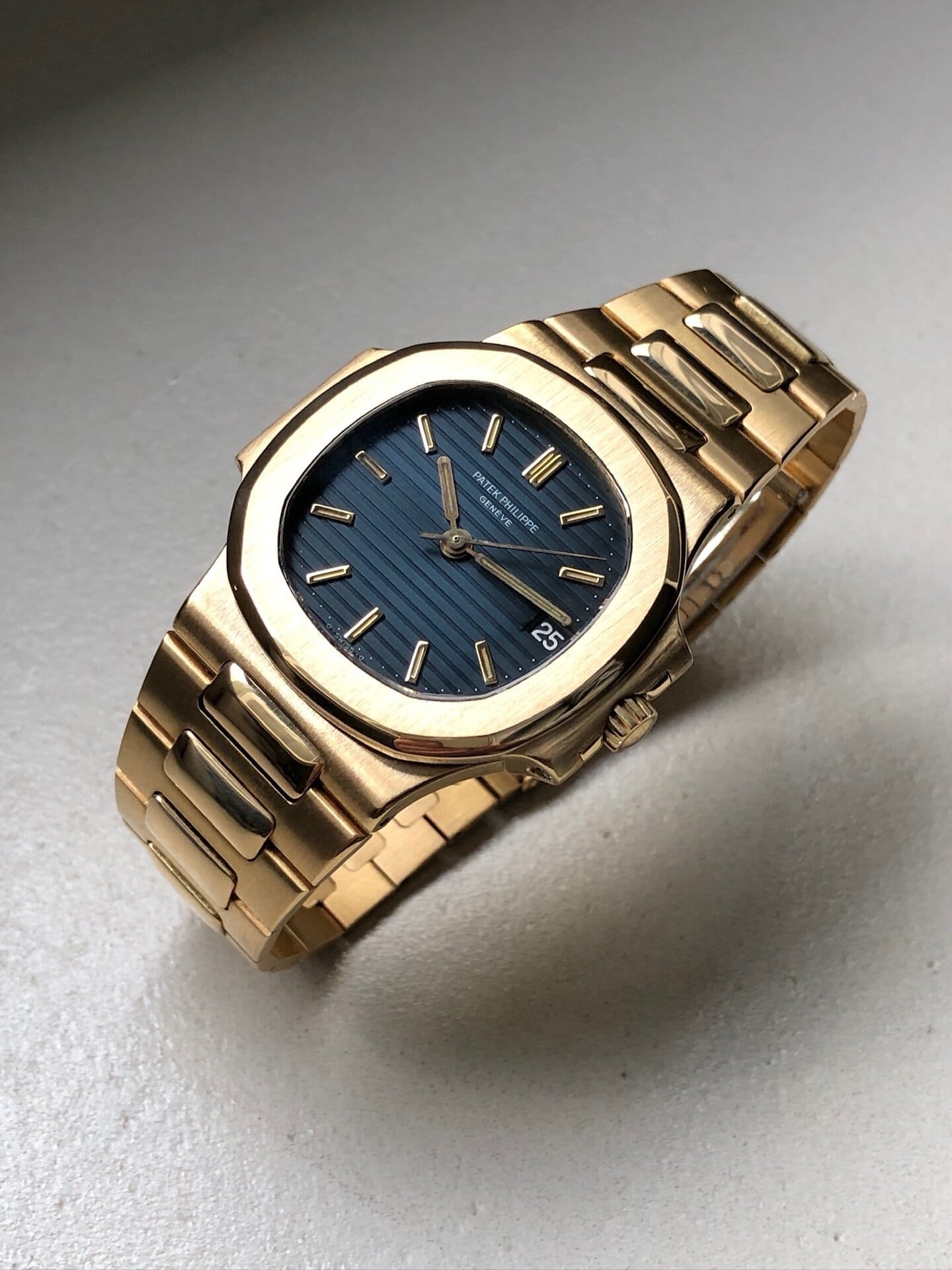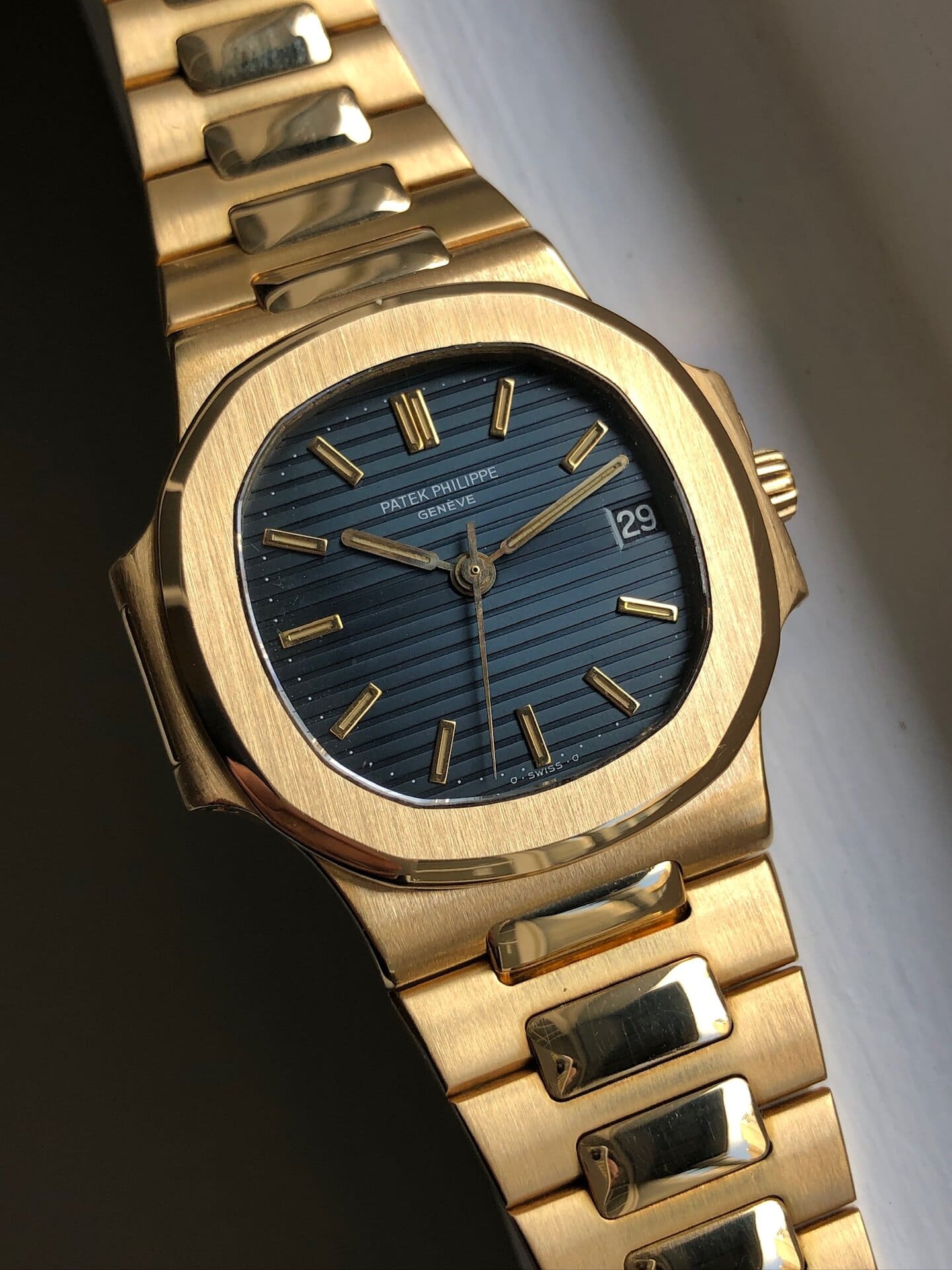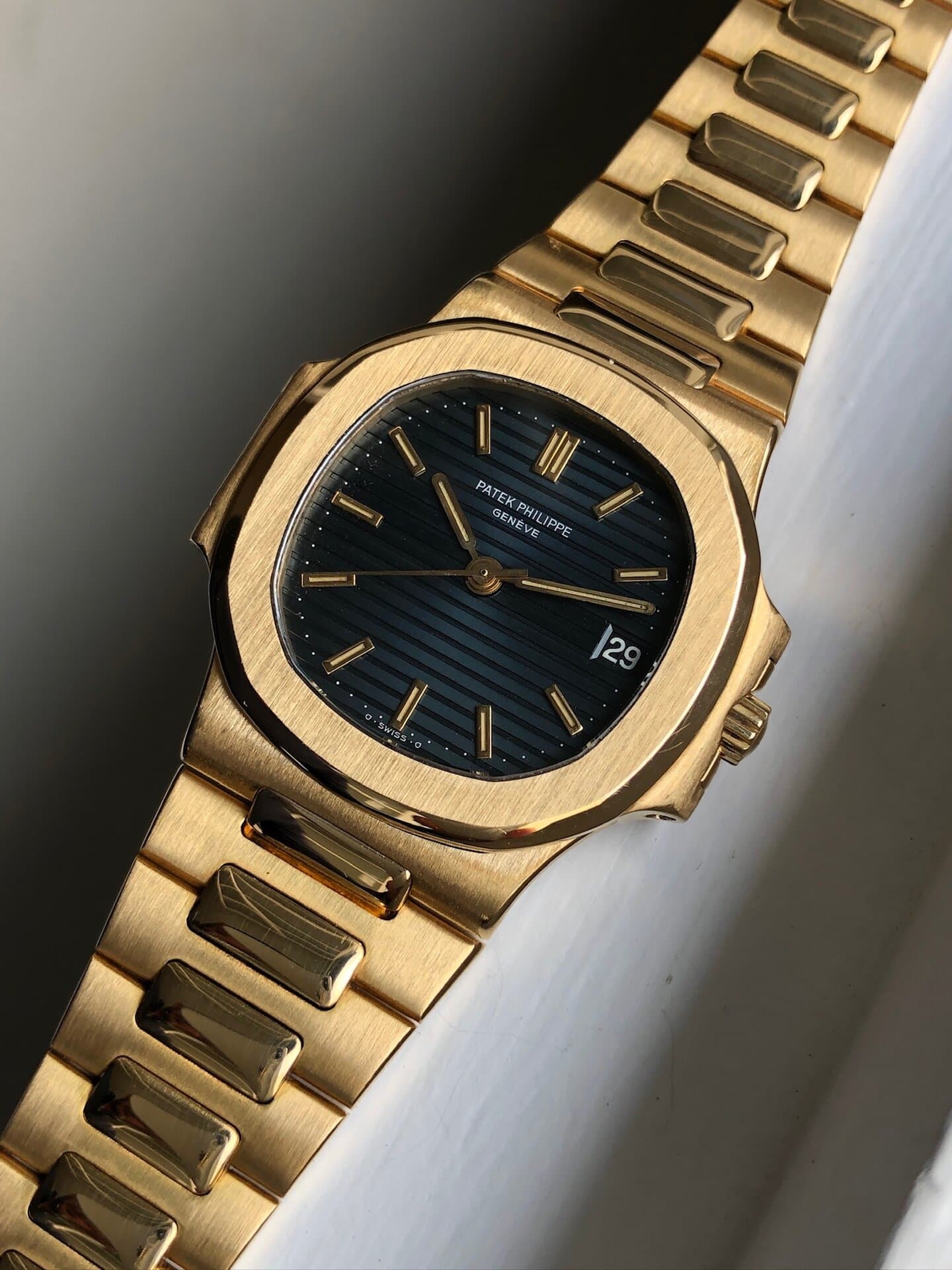 For the most delicate of us this 37.5mm timepiece is the alternative to its « Jumbo » sister the Nautilus ref.3700 (42mm). A true unisex watch! You have been warned, Madame will most likely borrow it more often that you would like. The watch proposed here is part of the first series with a black date disc, manufactured in 1983 and sold in june 1983.