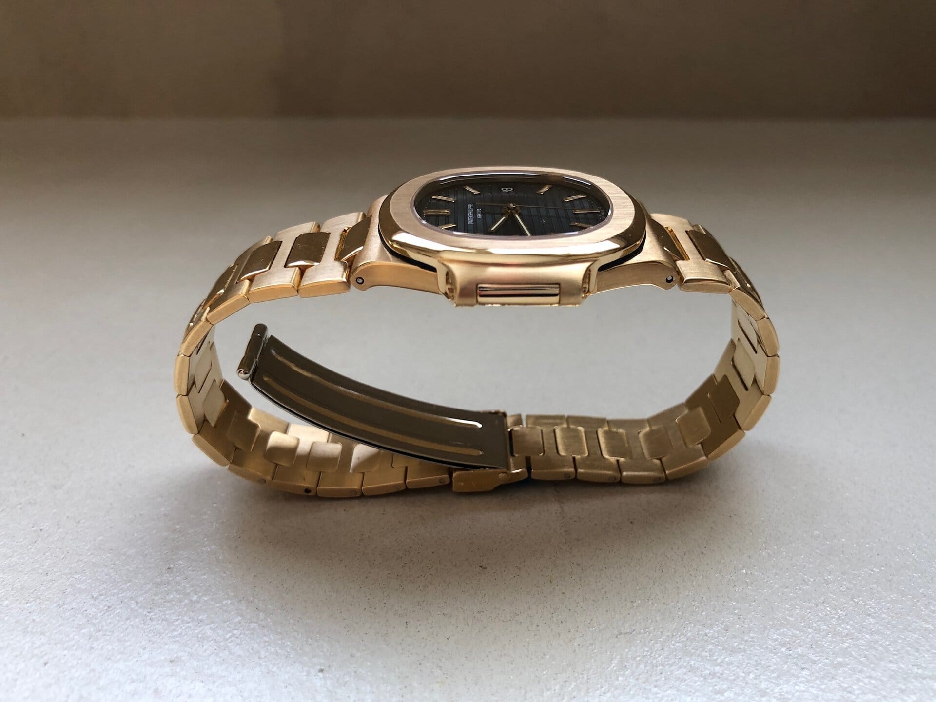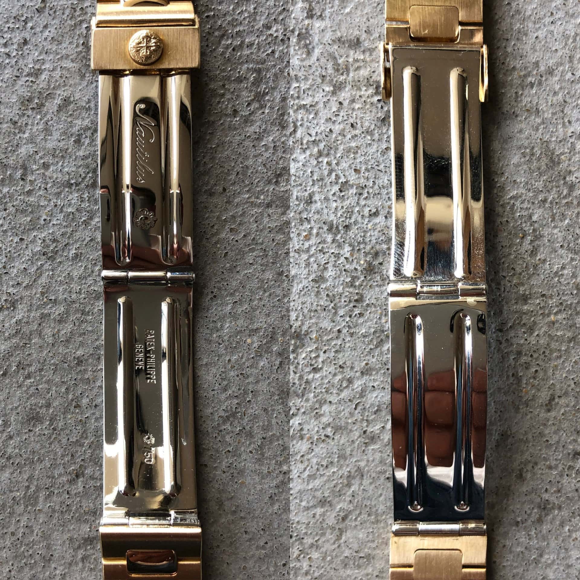 Bracelet: the bracelet is extremely tight and it proudly stands-up. 22 links. Nautilus engraved on the clasp.