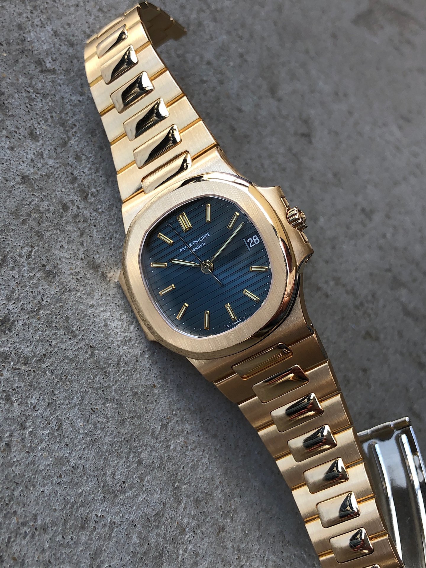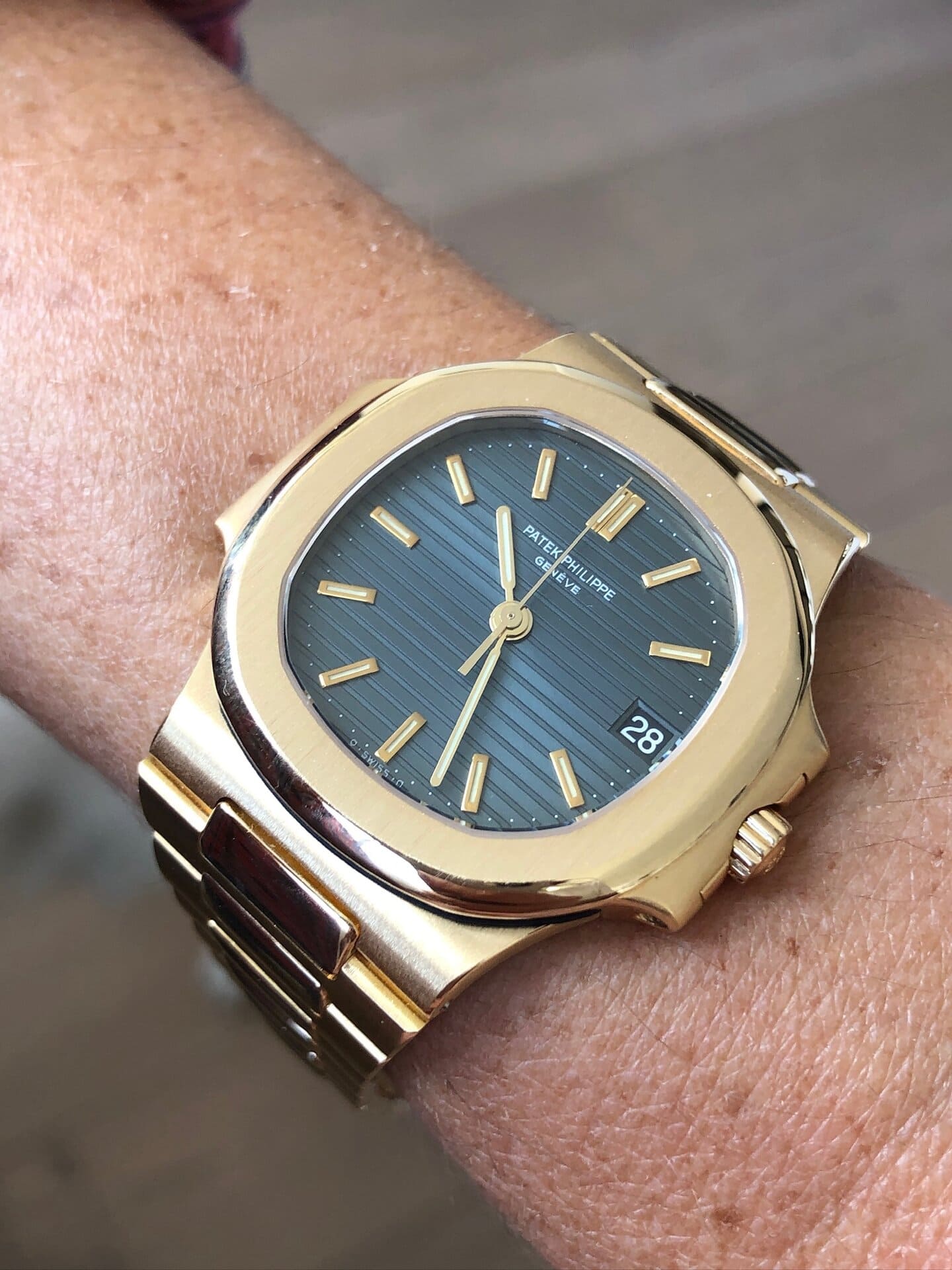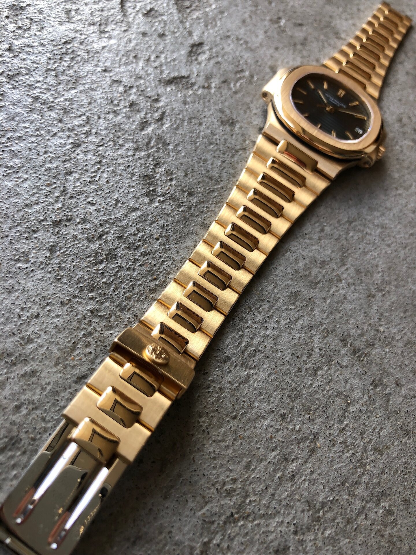 For the most delicate of us this 37.5mm timepiece is the alternative to its « Jumbo » sister the Nautilus ref.3700 (42mm). A true unisex watch! You have been warned, Madame will most likely borrow it more often that you would like. The watch proposed here is part of the second series with a white date disc, manufactured in sept 1990 sold by Astrua in october 1990.