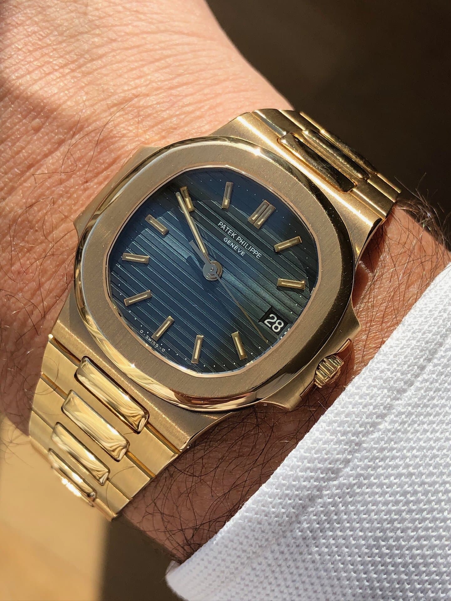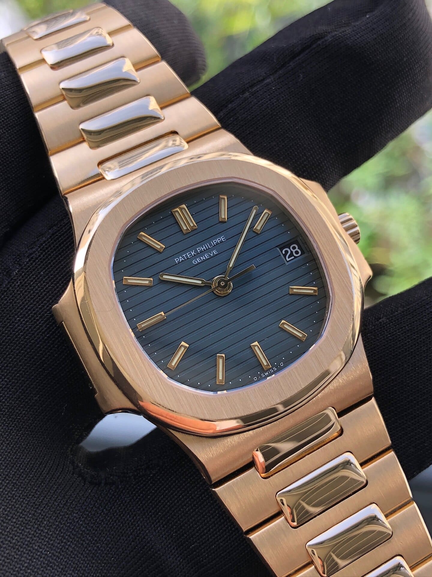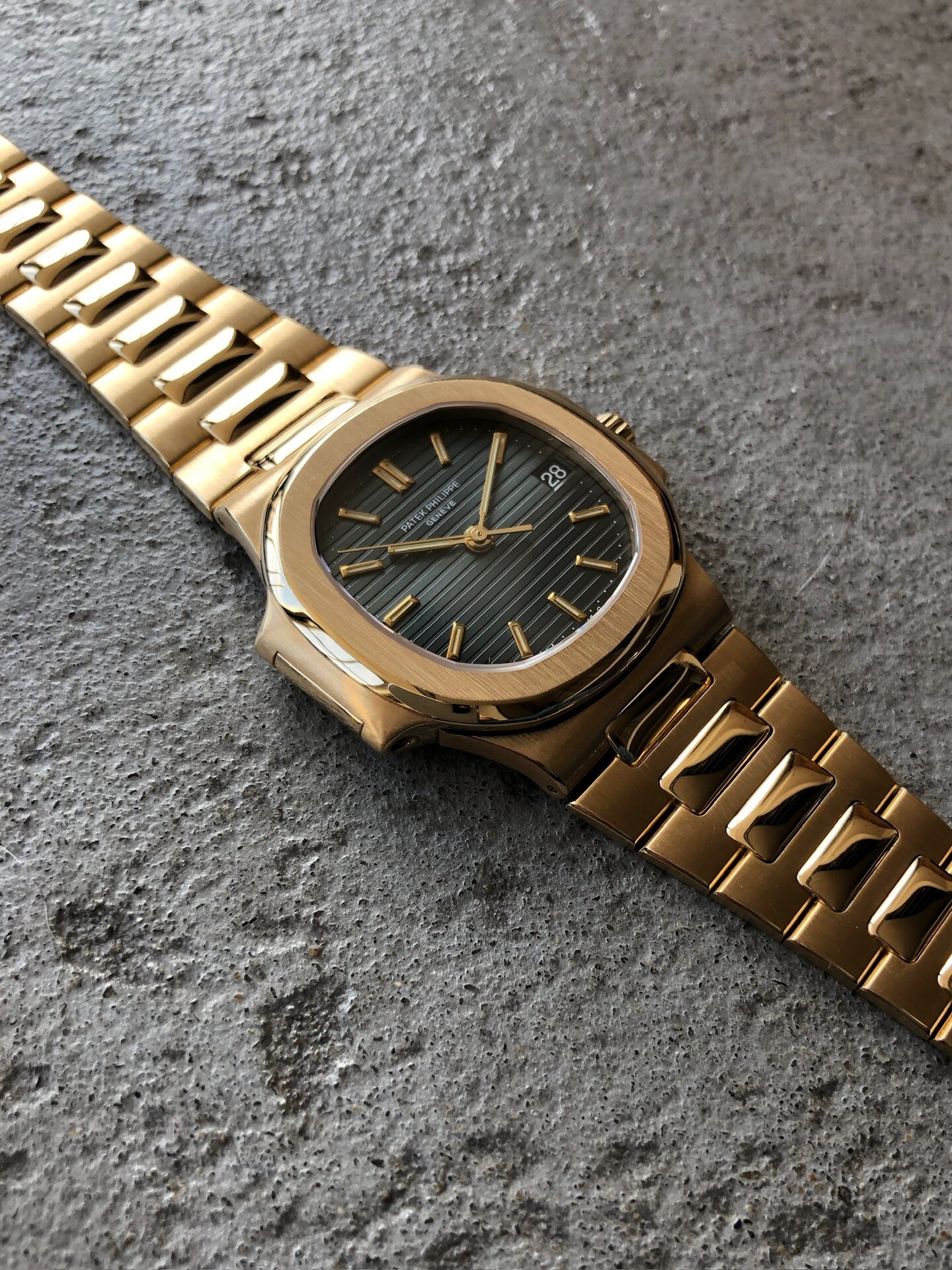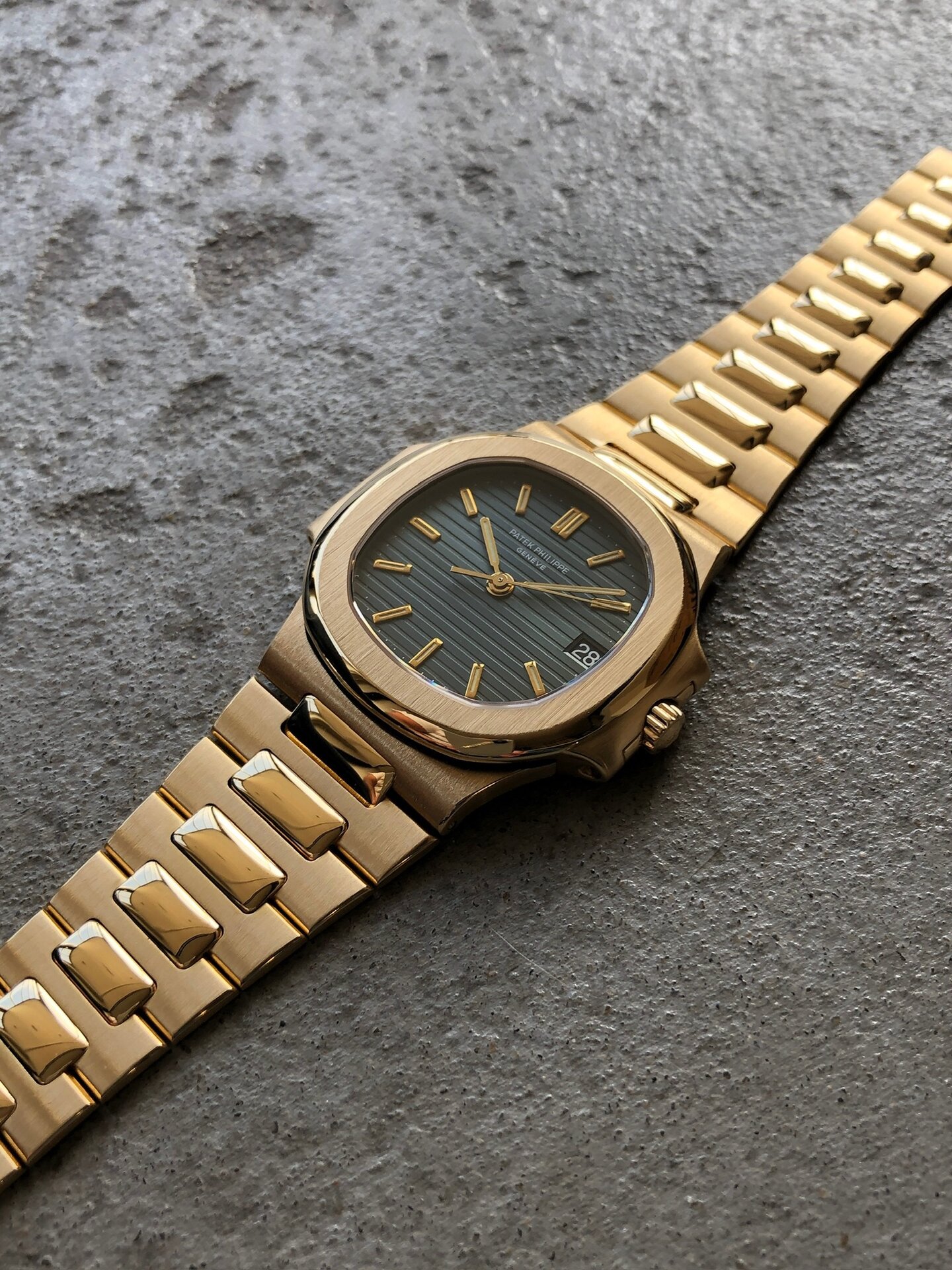 For the most delicate of us this 37.5mm timepiece is the alternative to its « Jumbo » sister the Nautilus ref.3700 (42mm). A true unisex watch! You have been warned, Madame will most likely borrow it more often that you would like. The watch proposed here is part of the second series with a white date disc, manufactured in sept 1990 sold by Astrua in october 1990.