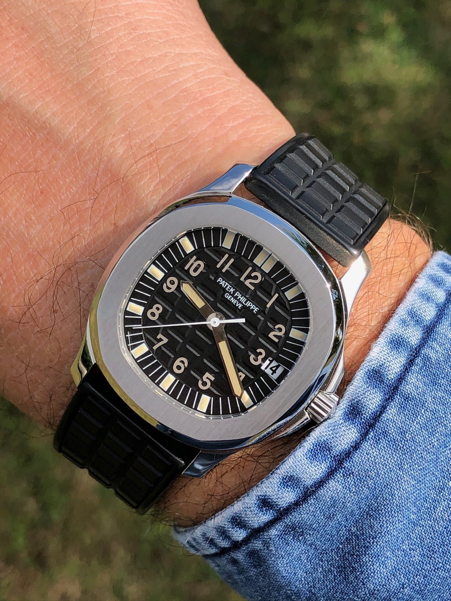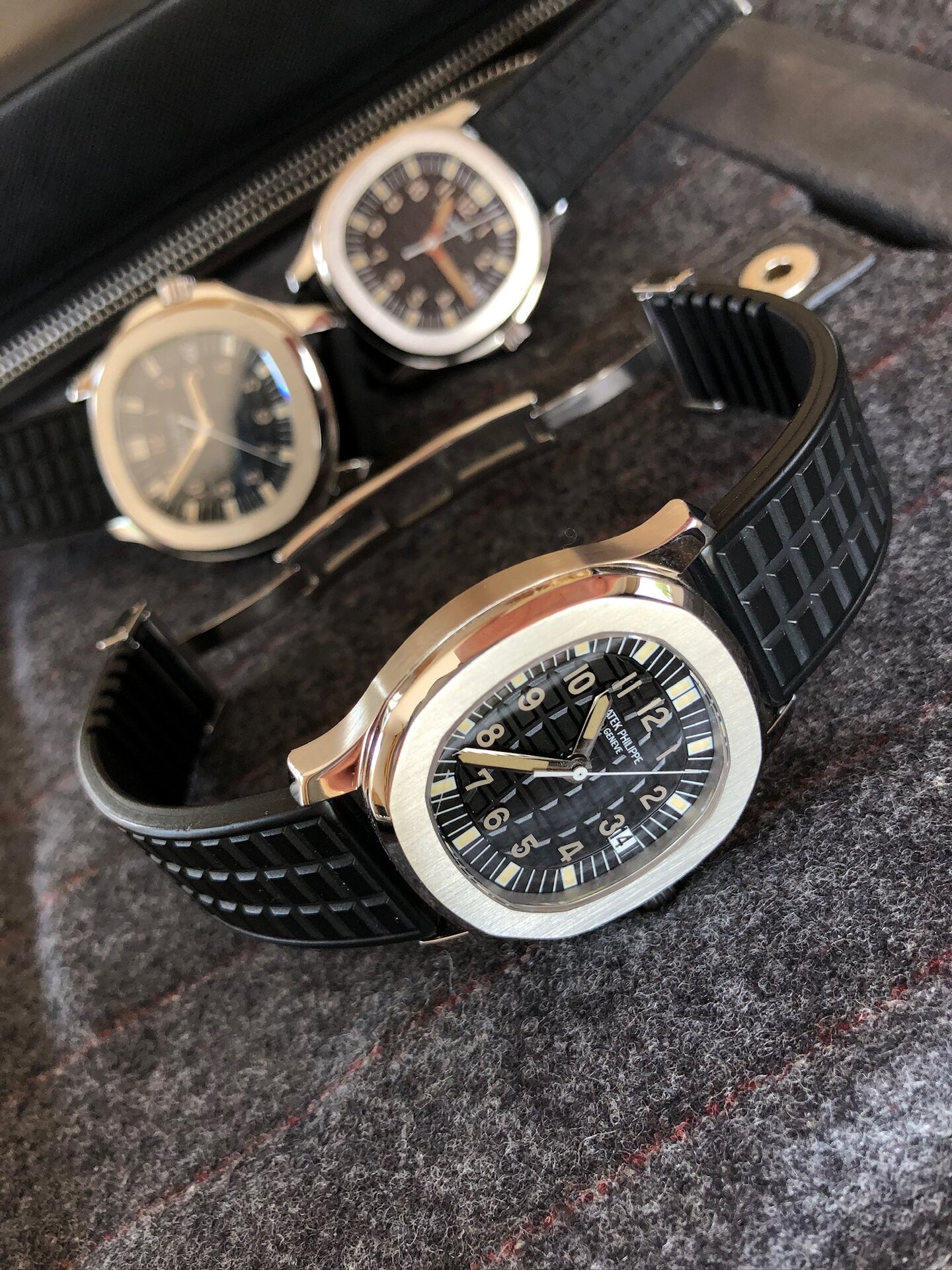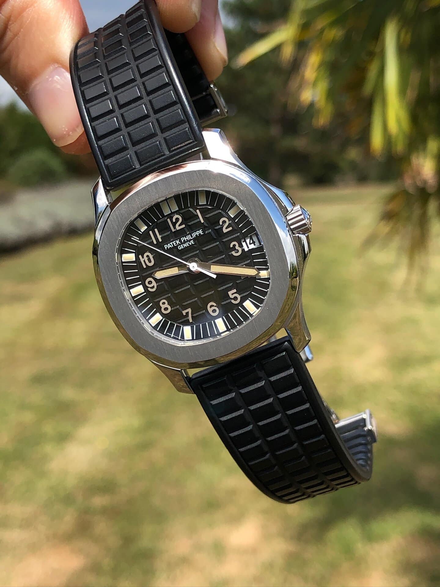 Bracelets: featured with its black rubber strap (another Patek rubber color strap can be discussed).