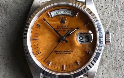 ROLEX Day-Date White gold « Wood Dial » light Birch Briar Root Ref. 18039 One could call the Day-Date the backbone of the Rolex line... Read More